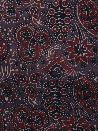 Brown Maroon Black Ivory Ajrakh Hand Block Printed Cotton Blouse Fabric - BPA026