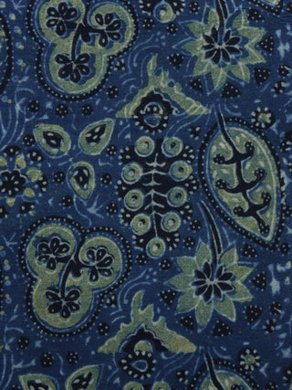 Indigo Green Black Ivory Ajrakh Hand Block Printed Cotton Blouse Fabric - BPA027