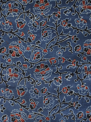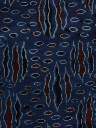 Indigo Ivory Black Rust Black Ajrakh Hand Block Printed Cotton Blouse Fabric - BPA041