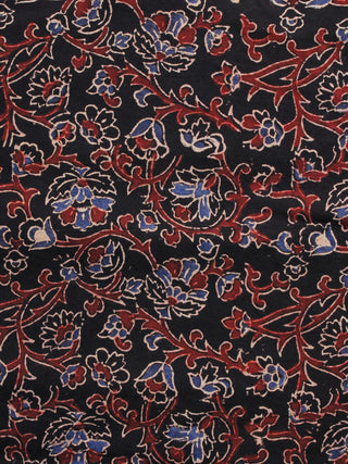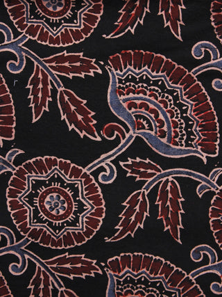 Black Maroon Rust Orange Ajrakh Hand Block Printed Cotton Blouse Fabric - BPA011