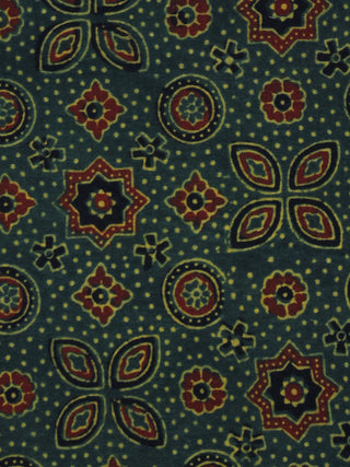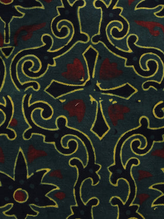 Green Black Yellow Rust Black Ajrakh Hand Block Printed Cotton Blouse Fabric - BPA035