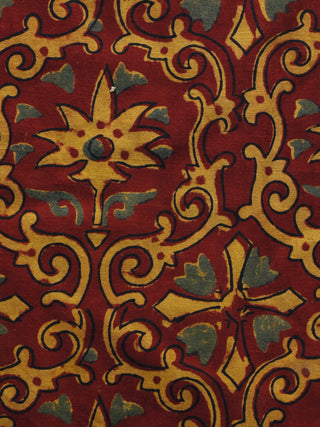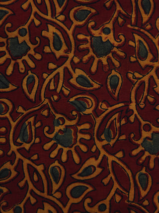 Maroon Rust Orange Green Ajrakh Hand Block Printed Cotton Blouse Fabric - BPA037