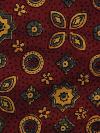 Maroon Rust Orange Green Ajrakh Hand Block Printed Cotton Blouse Fabric - BPA050