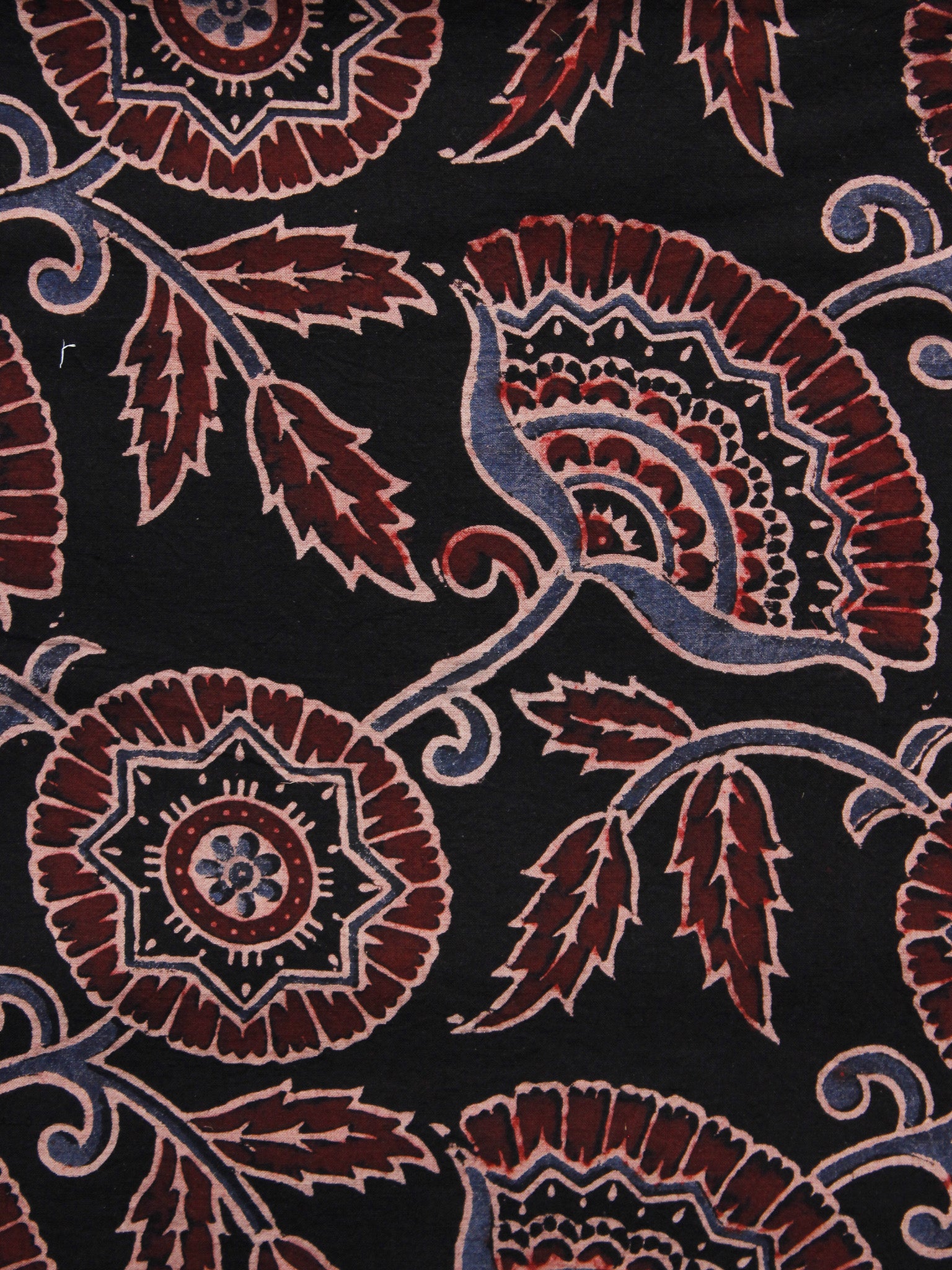 Black Baby Pink Maroon Ajrakh Hand Block Printed Cotton Blouse Fabric - BPA063