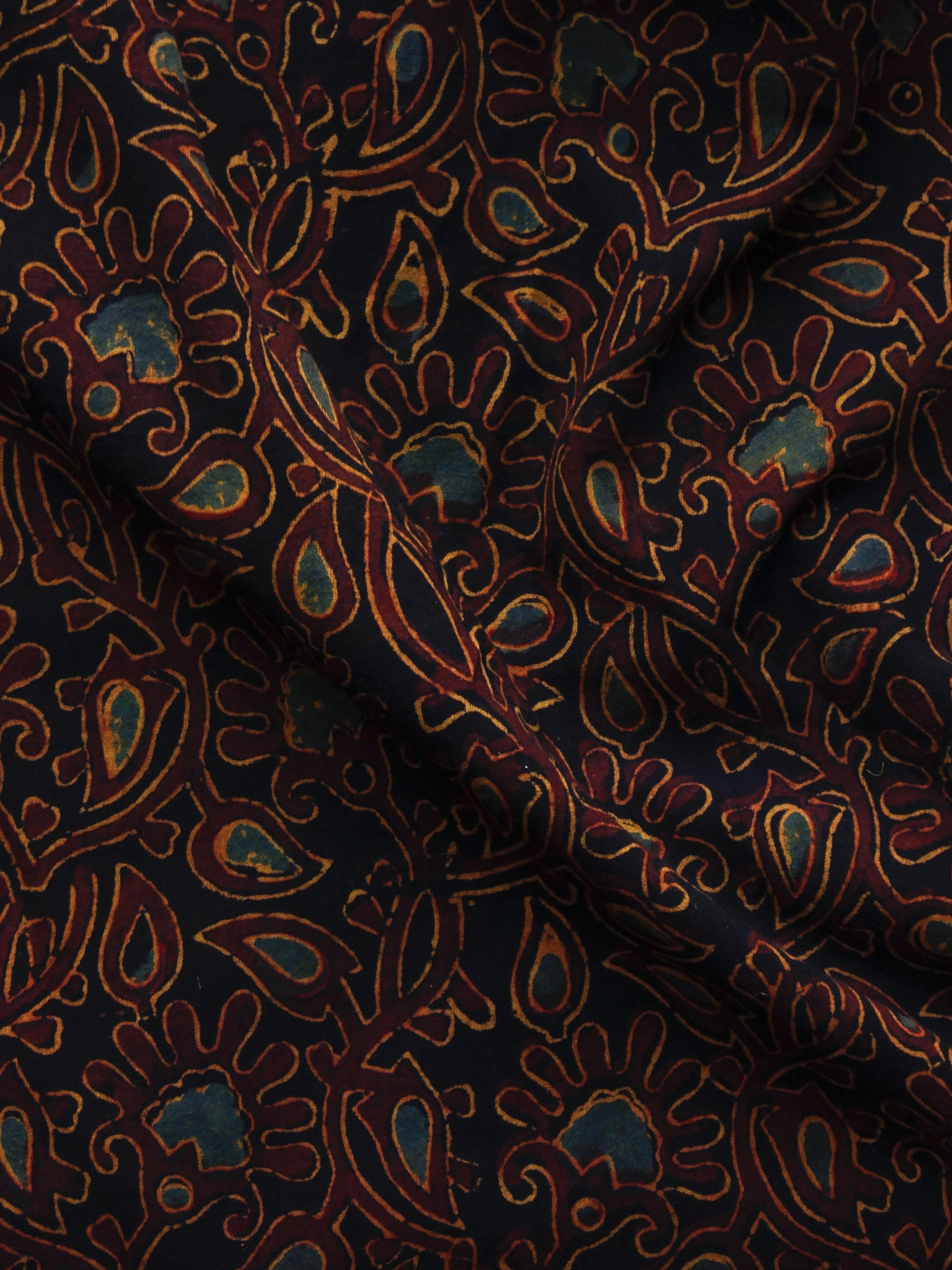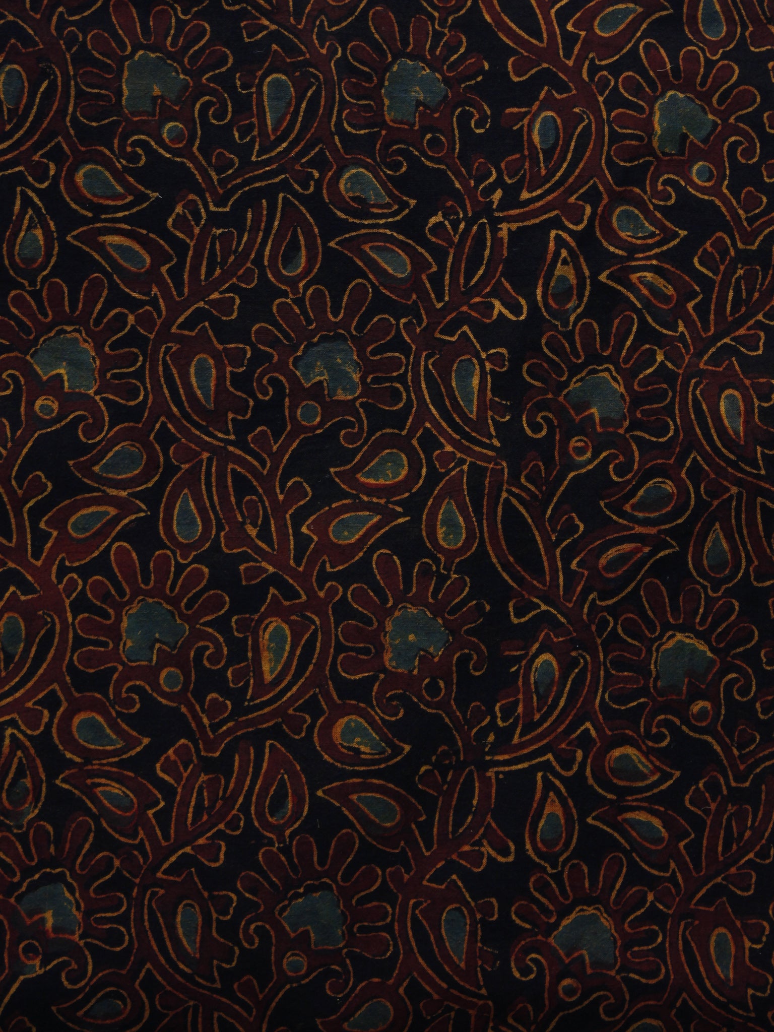 Black Maroon Rust Orange Ajrakh Hand Block Printed Cotton Blouse Fabric - BPA011