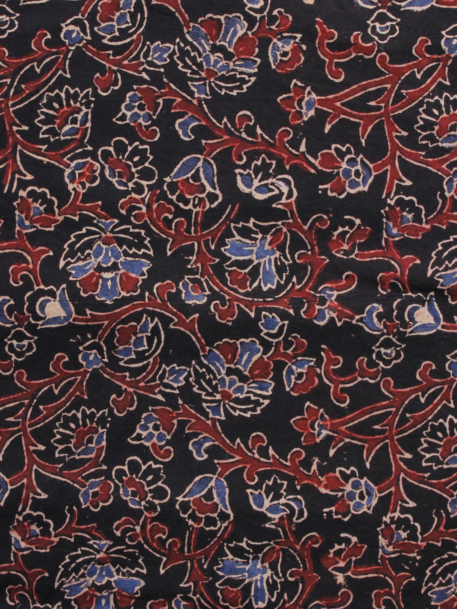 Black Rust Blue Ivory Ajrakh Hand Block Printed Cotton Blouse Fabric - BPA059