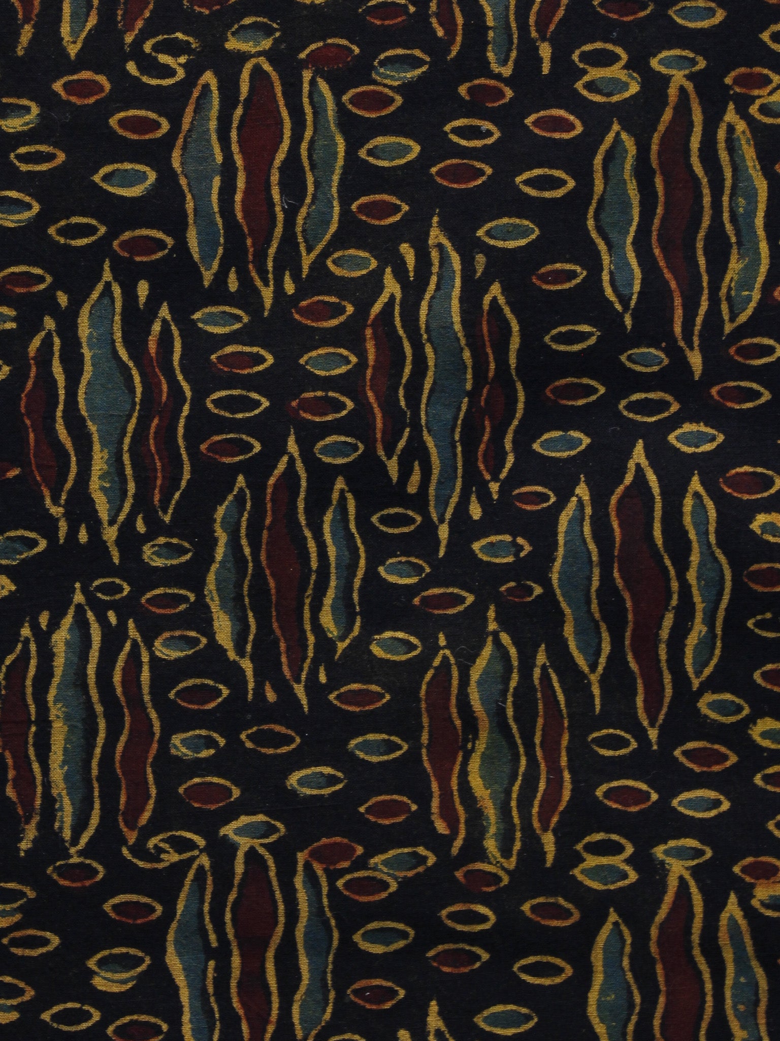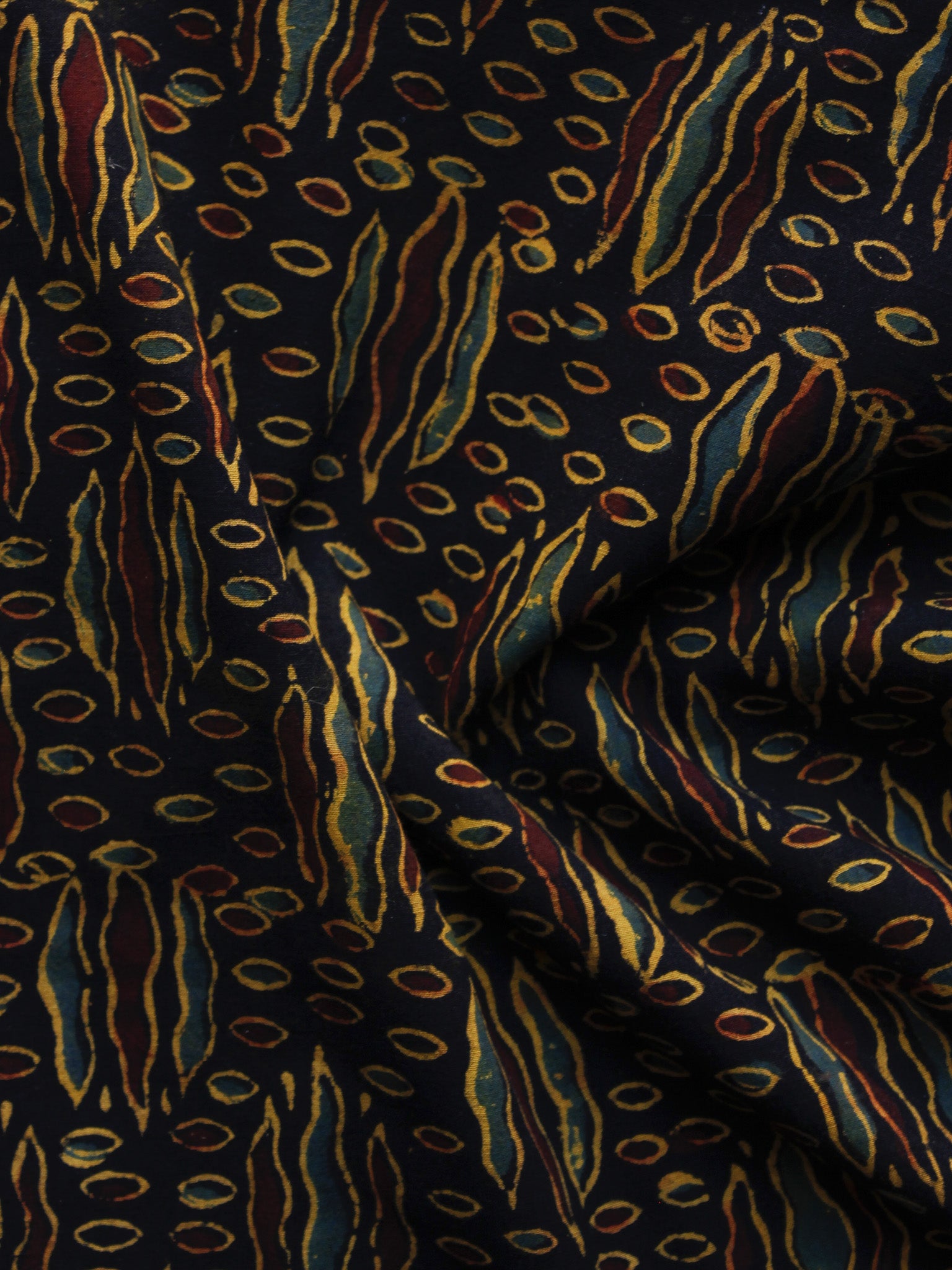 Black Rust Yellow Ajrakh Hand Block Printed Cotton Blouse Fabric - BPA040
