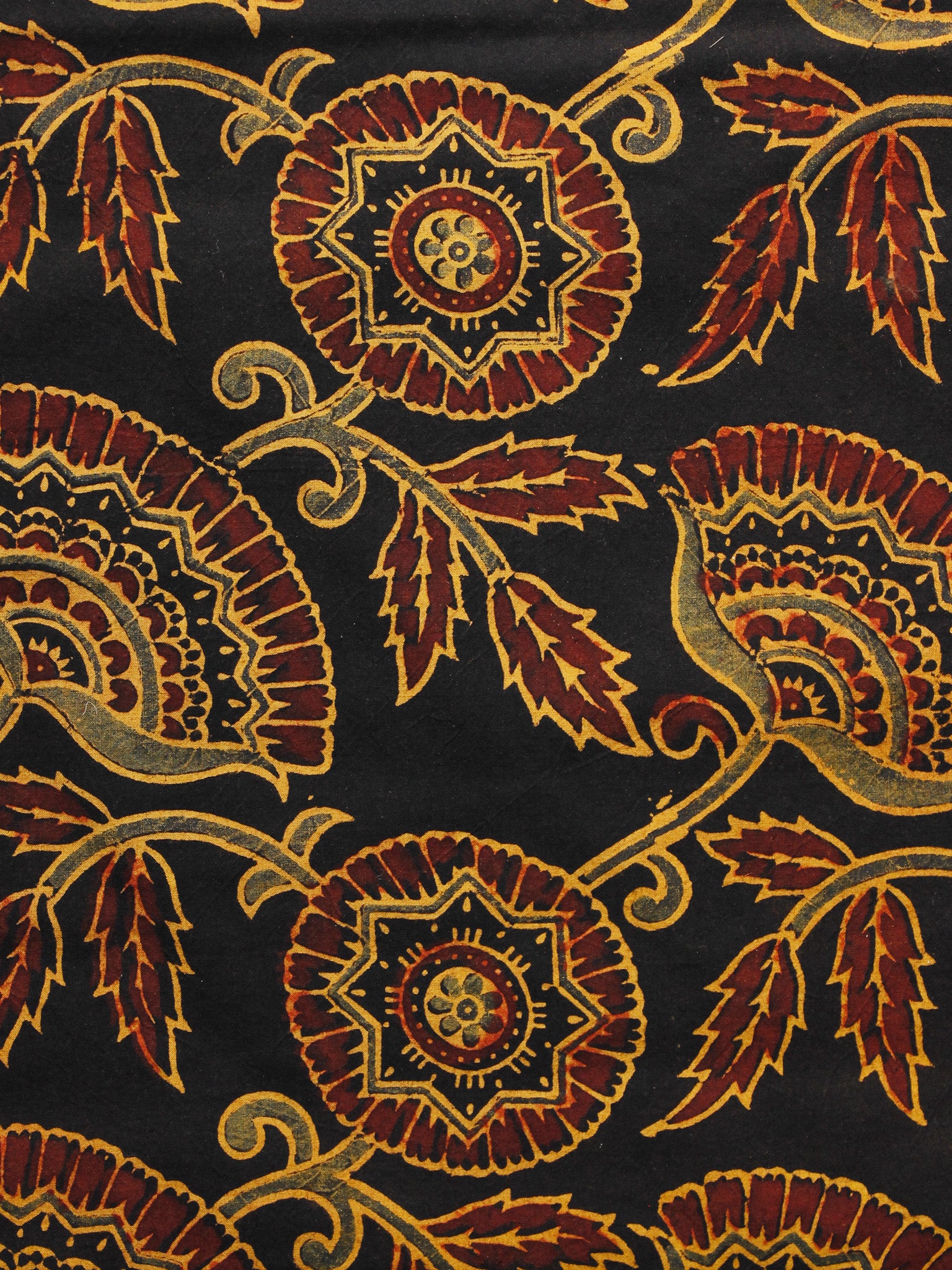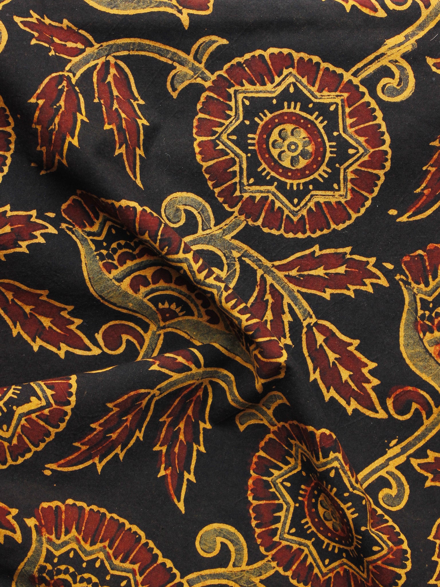 Black Yellow Brown Ajrakh Hand Block Printed Cotton Blouse Fabric - BPA064