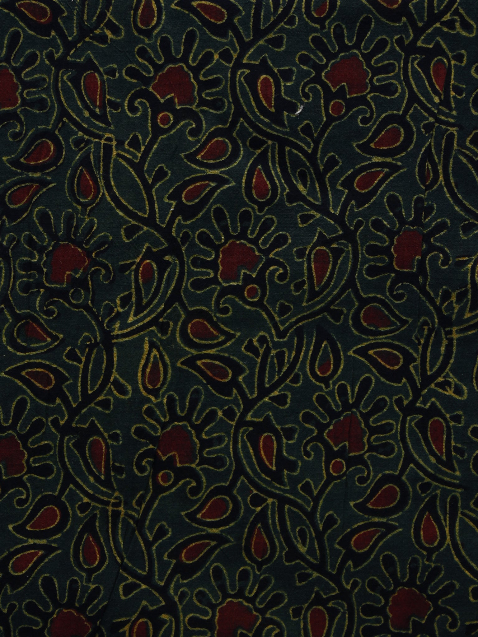 Green Black Rust Ajrakh Hand Block Printed Cotton Blouse Fabric - BPA051