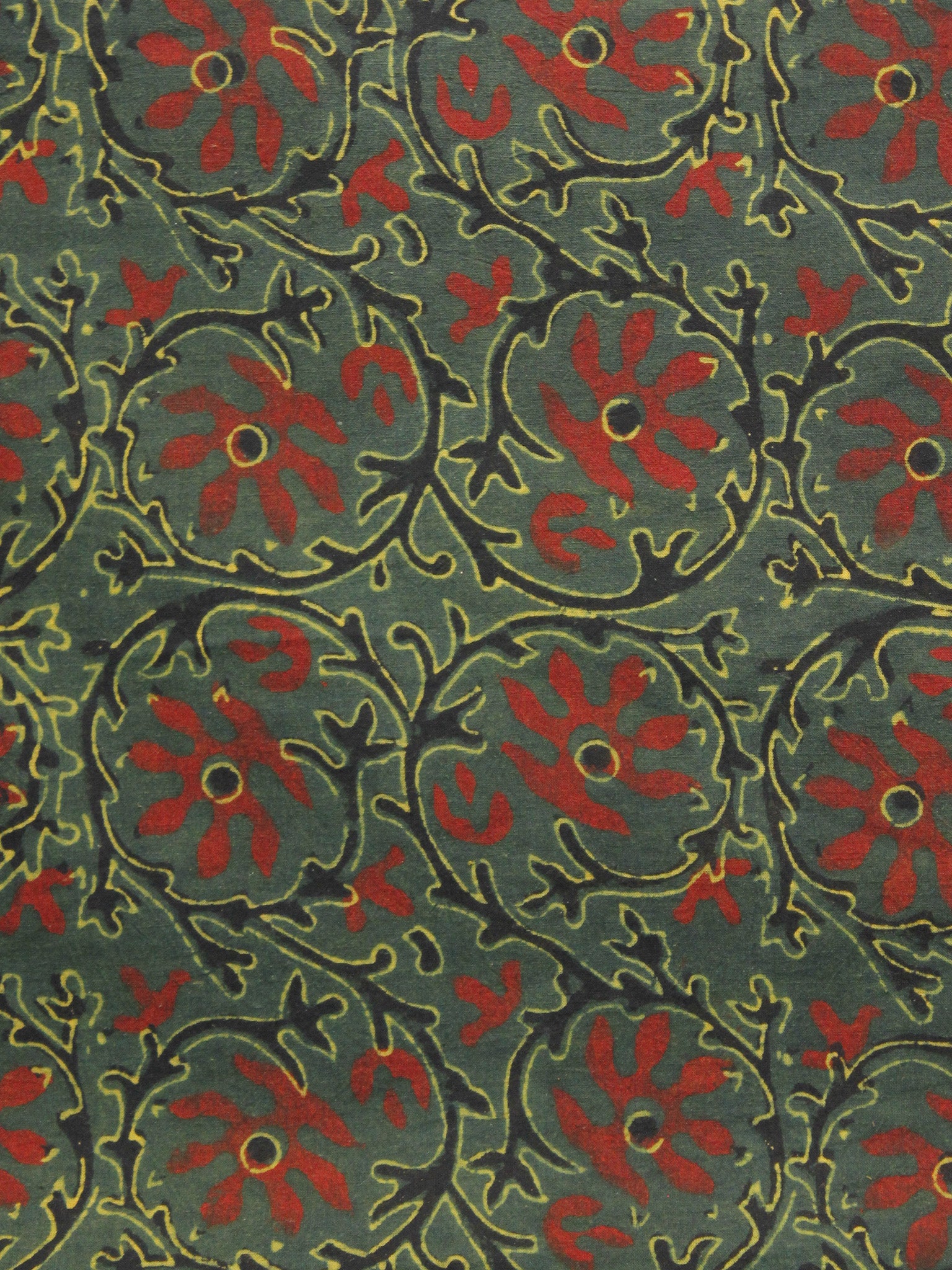 Green Maroon Yellow Ajrakh Hand Block Printed Cotton Blouse Fabric - BPA053