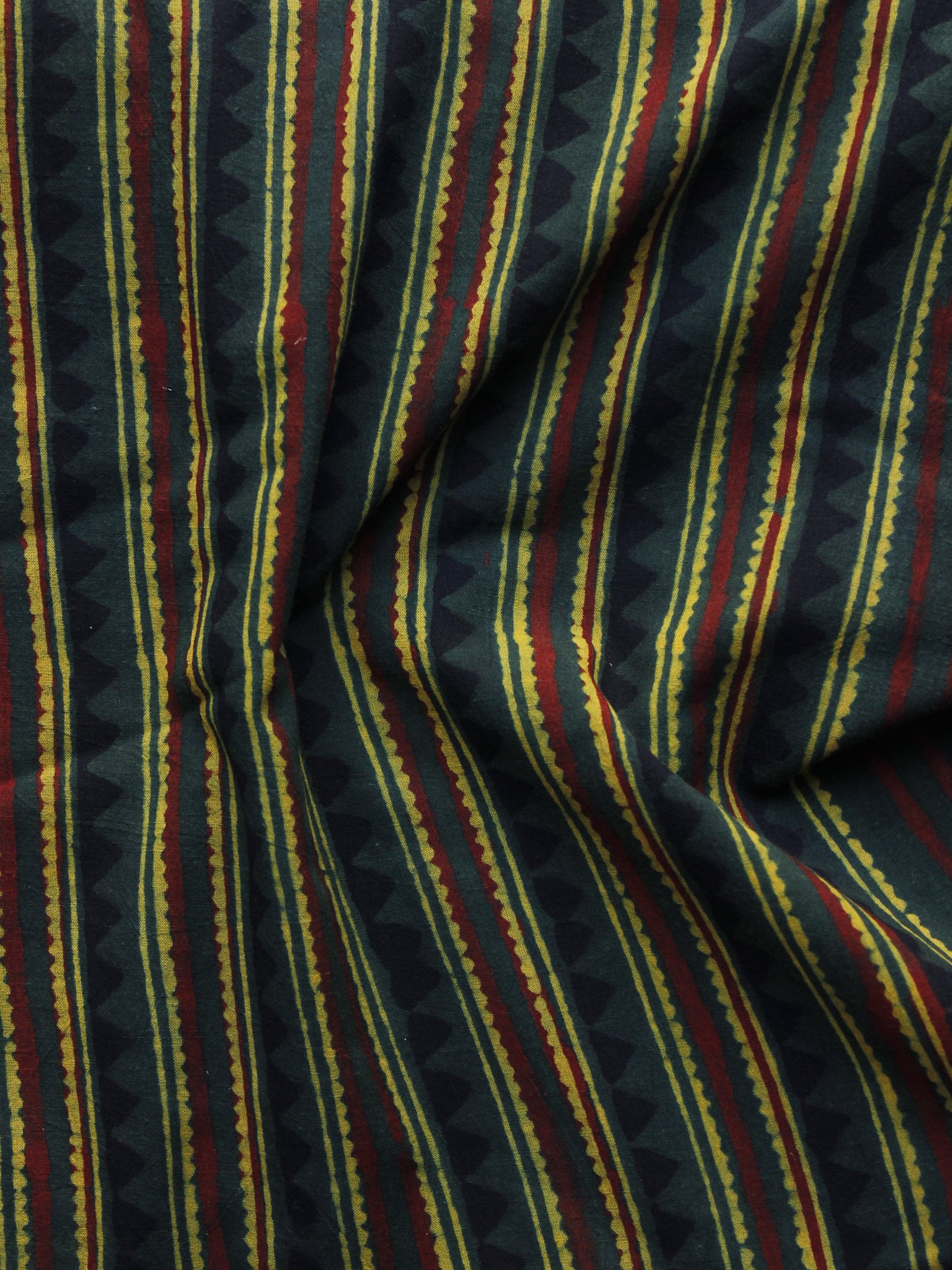 Green Yellow Rust Ajrakh Hand Block Printed Cotton Blouse Fabric - BPA034