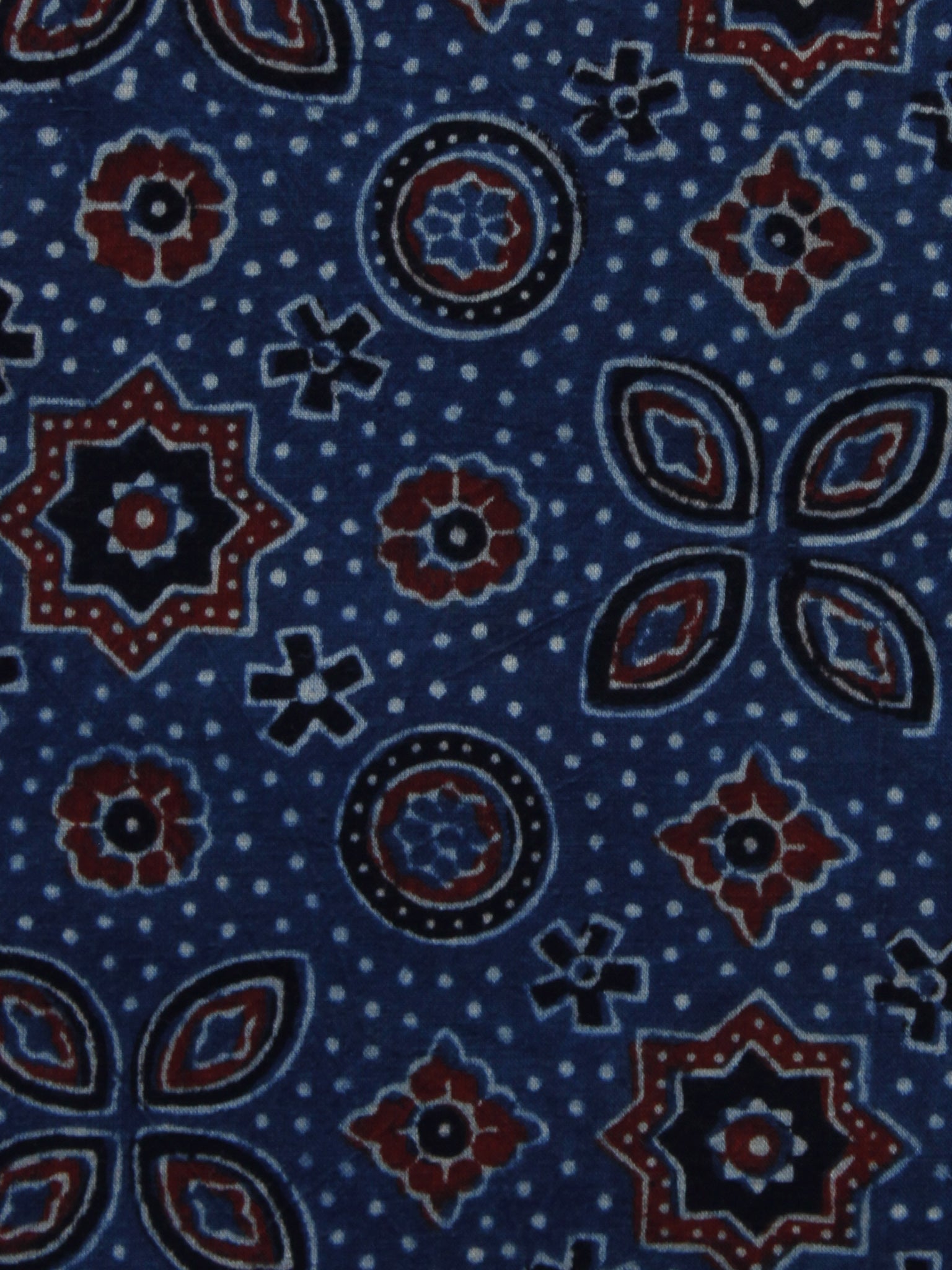 Indigo Ivory Black Rust Ajrakh Hand Block Printed Cotton Blouse Fabric - BPA049