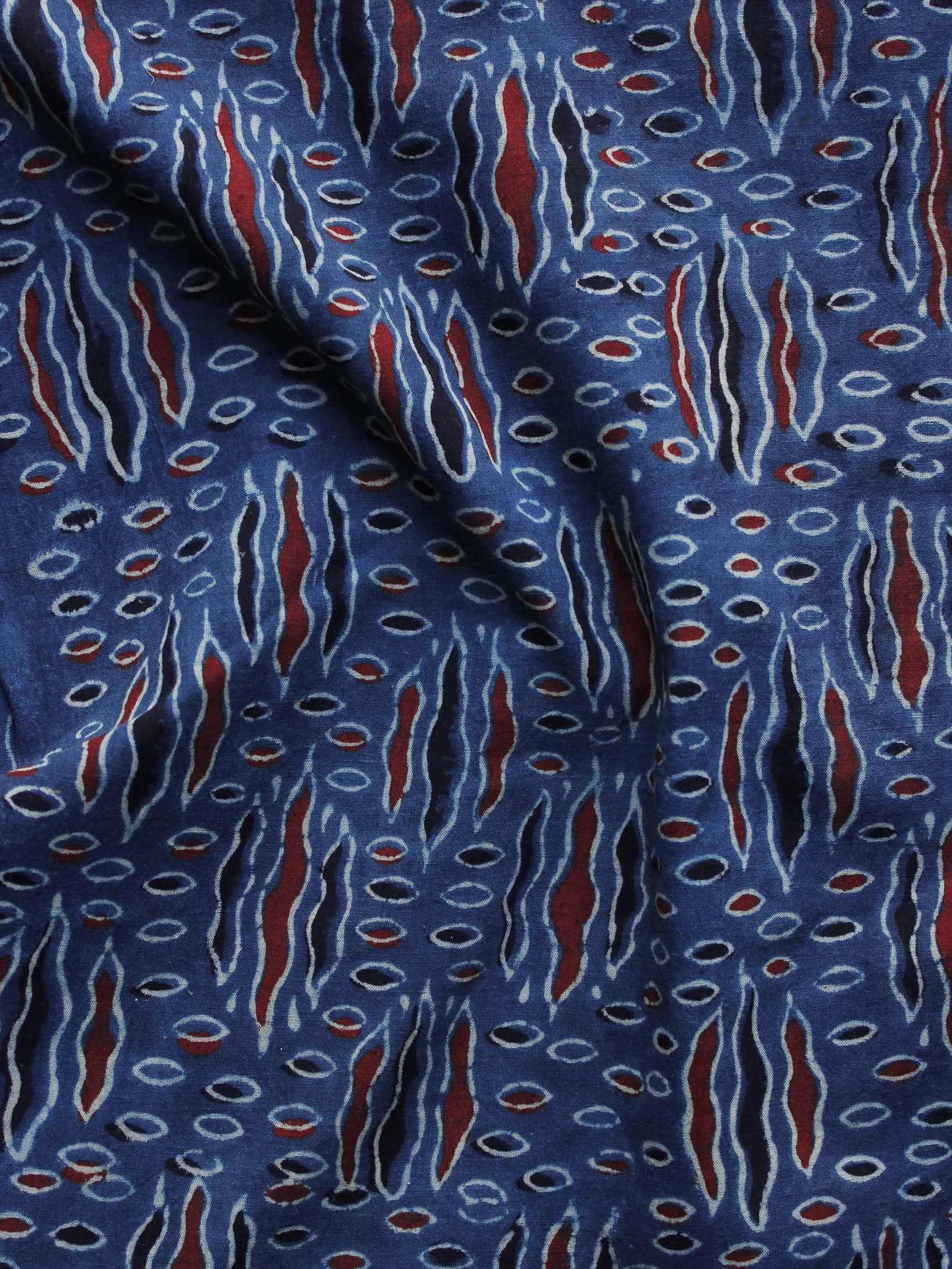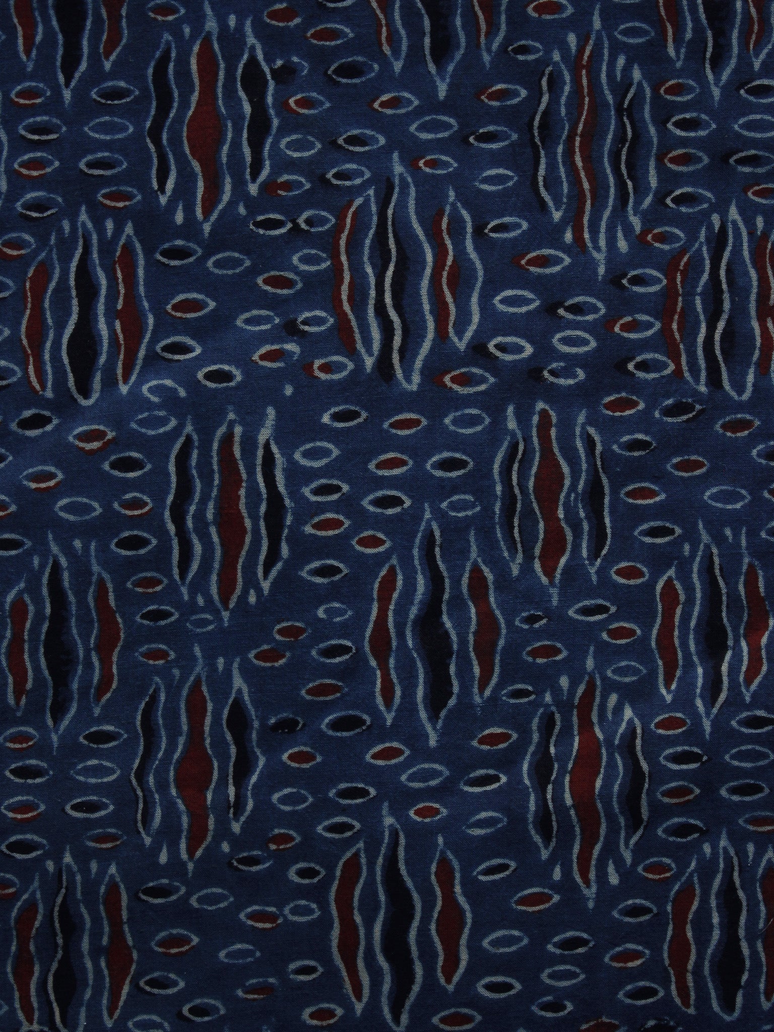 Indigo Ivory Black Rust Black Ajrakh Hand Block Printed Cotton Blouse Fabric - BPA041