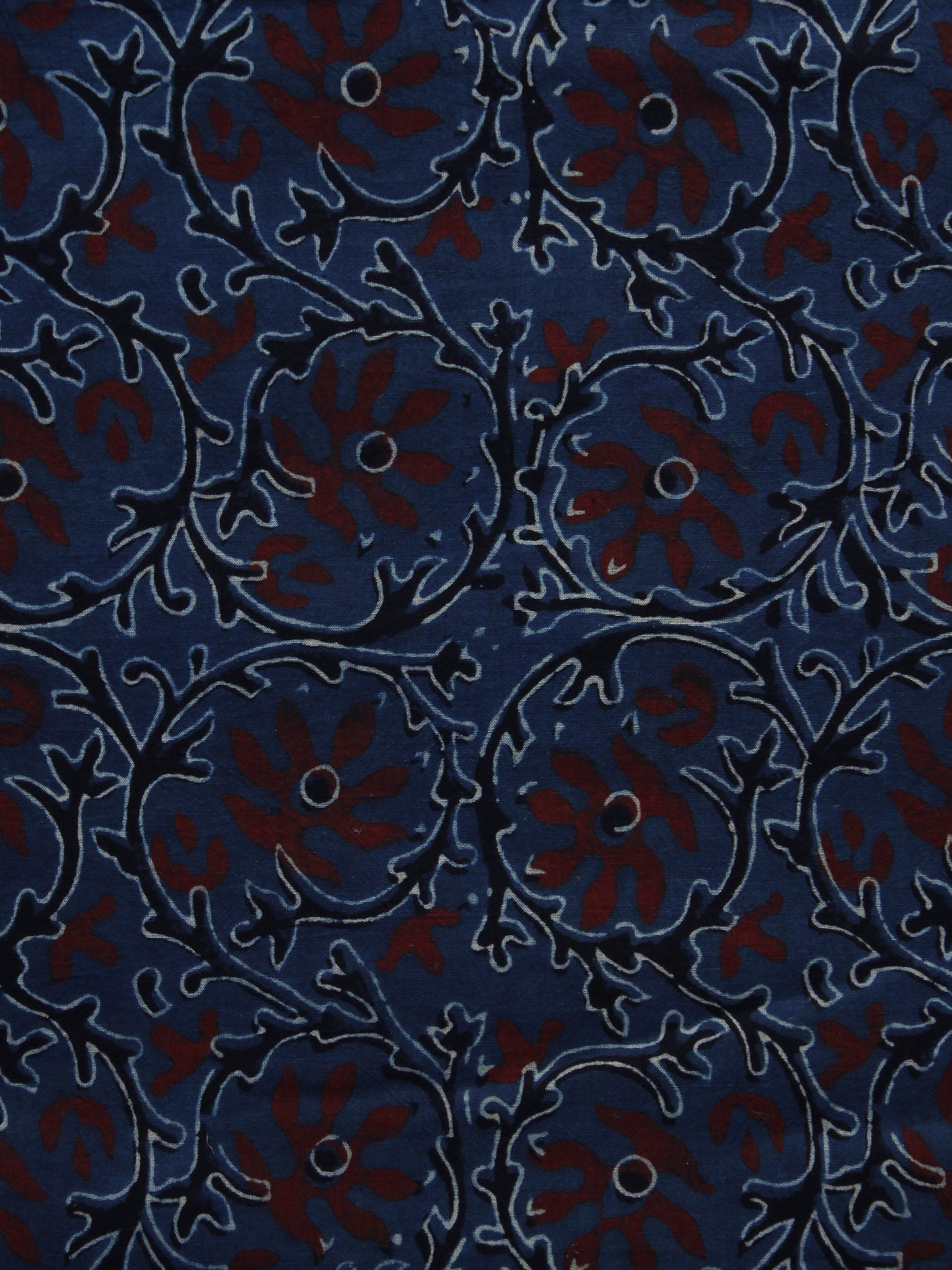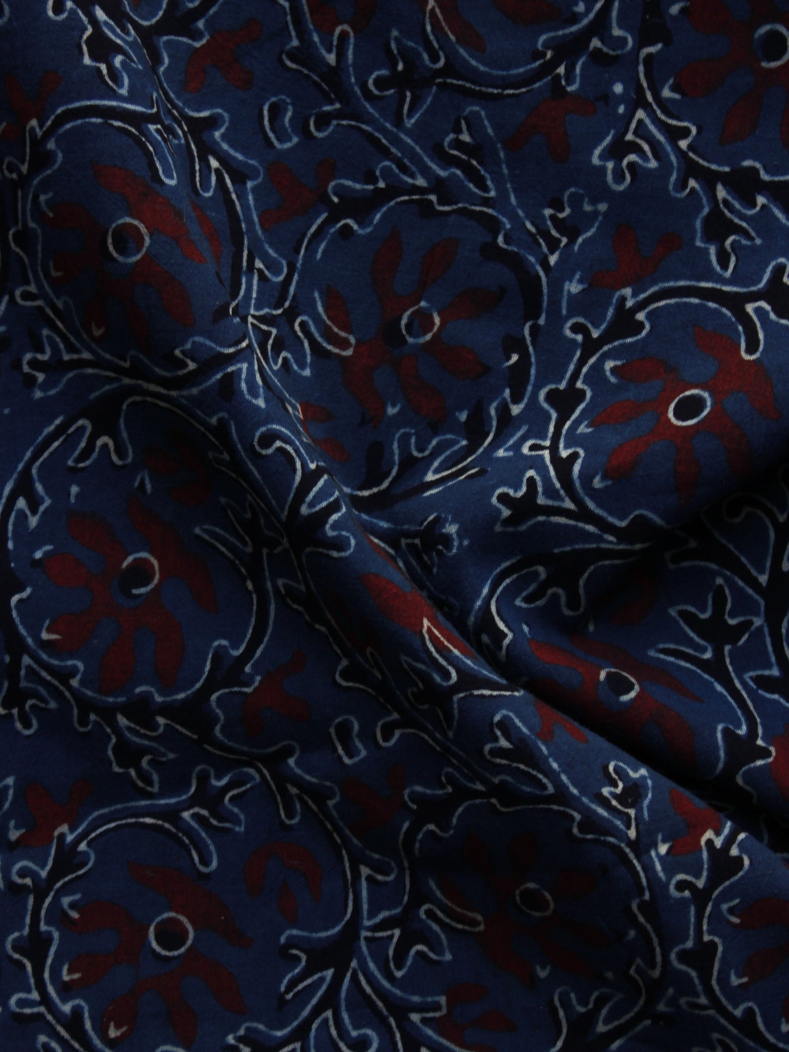 Indigo Ivory Black Rust Black Ajrakh Hand Block Printed Cotton Blouse Fabric - BPA052