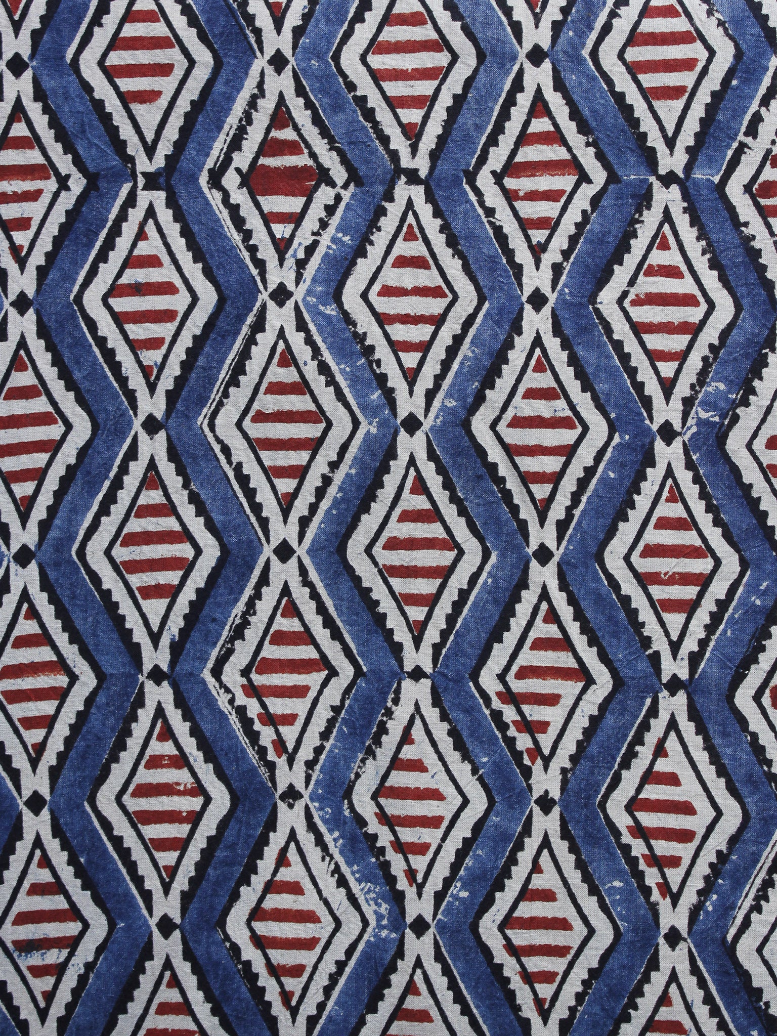Indigo Ivory Maroon Black Ajrakh Hand Block Printed Cotton Blouse Fabric - BPA017