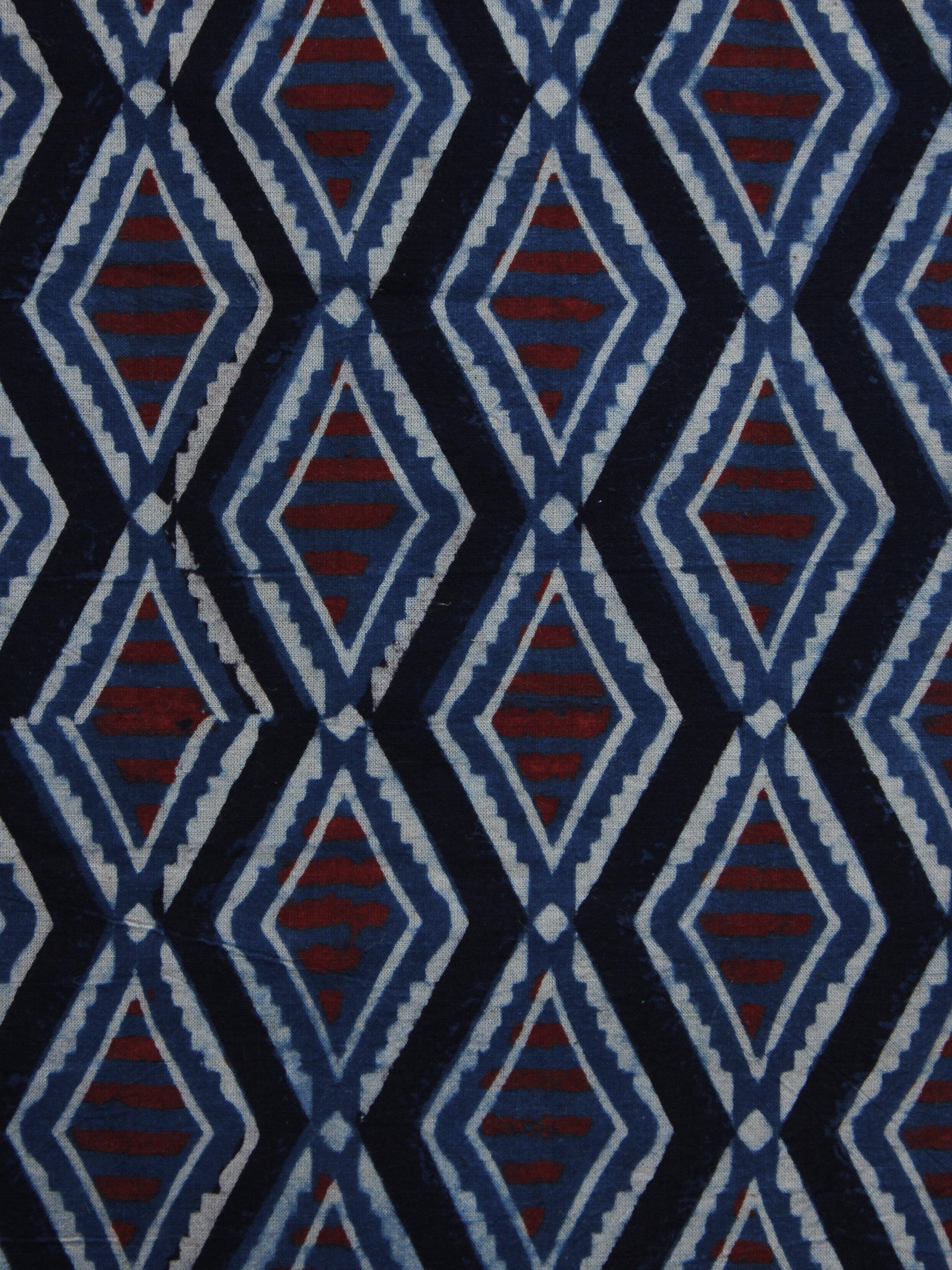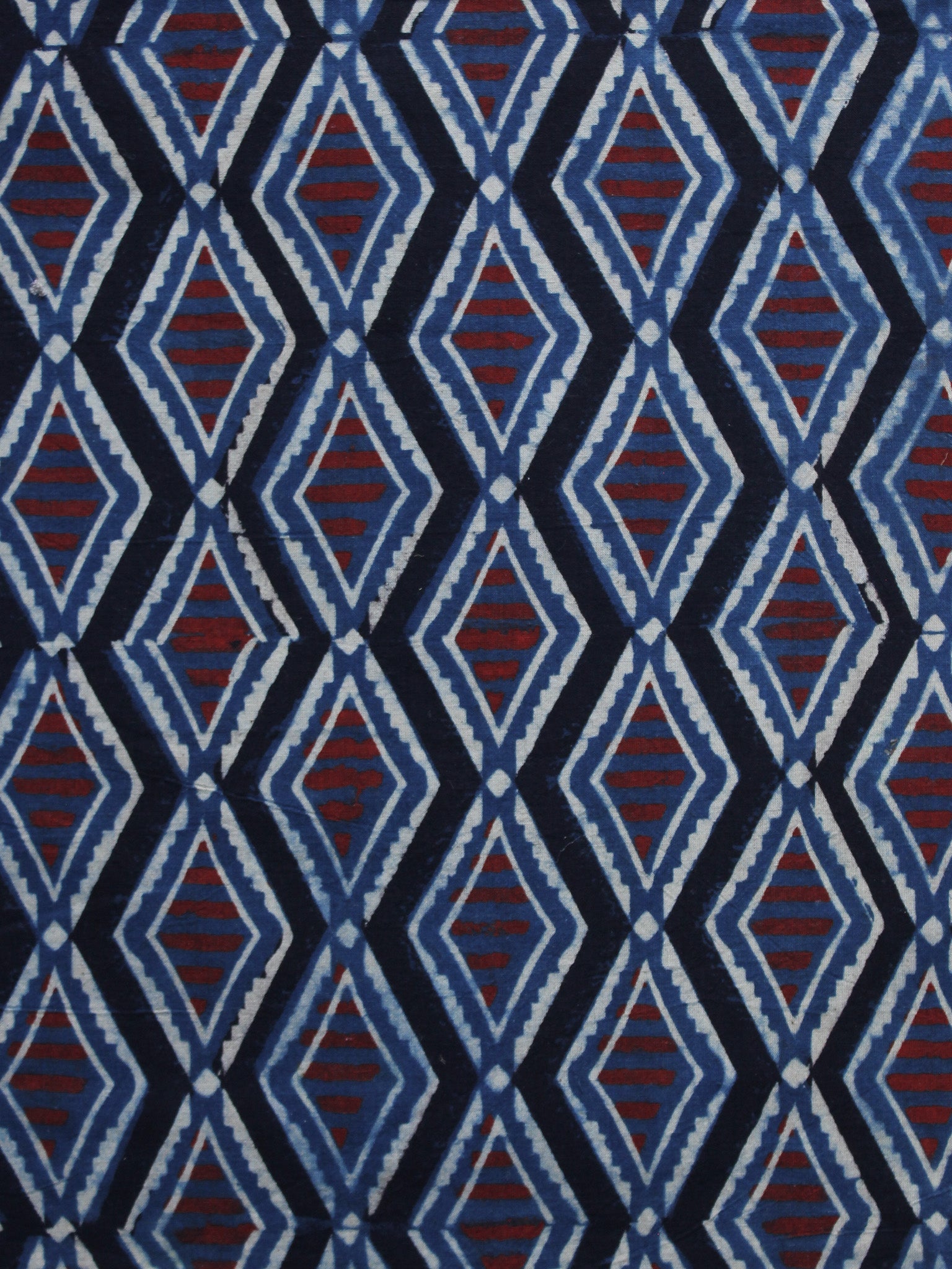 Indigo Ivory Rust Black Ajrakh Hand Block Printed Cotton Blouse Fabric - BPA012