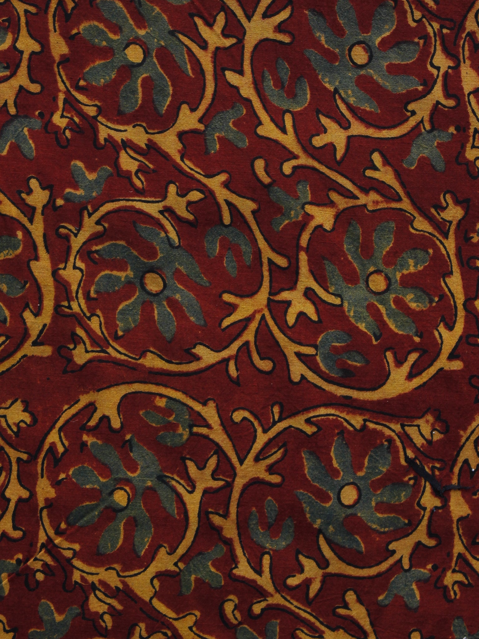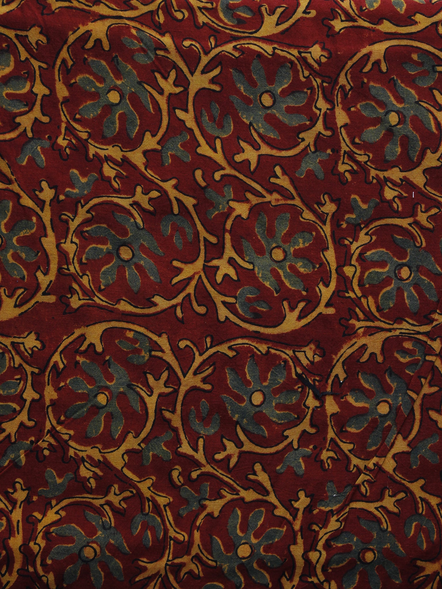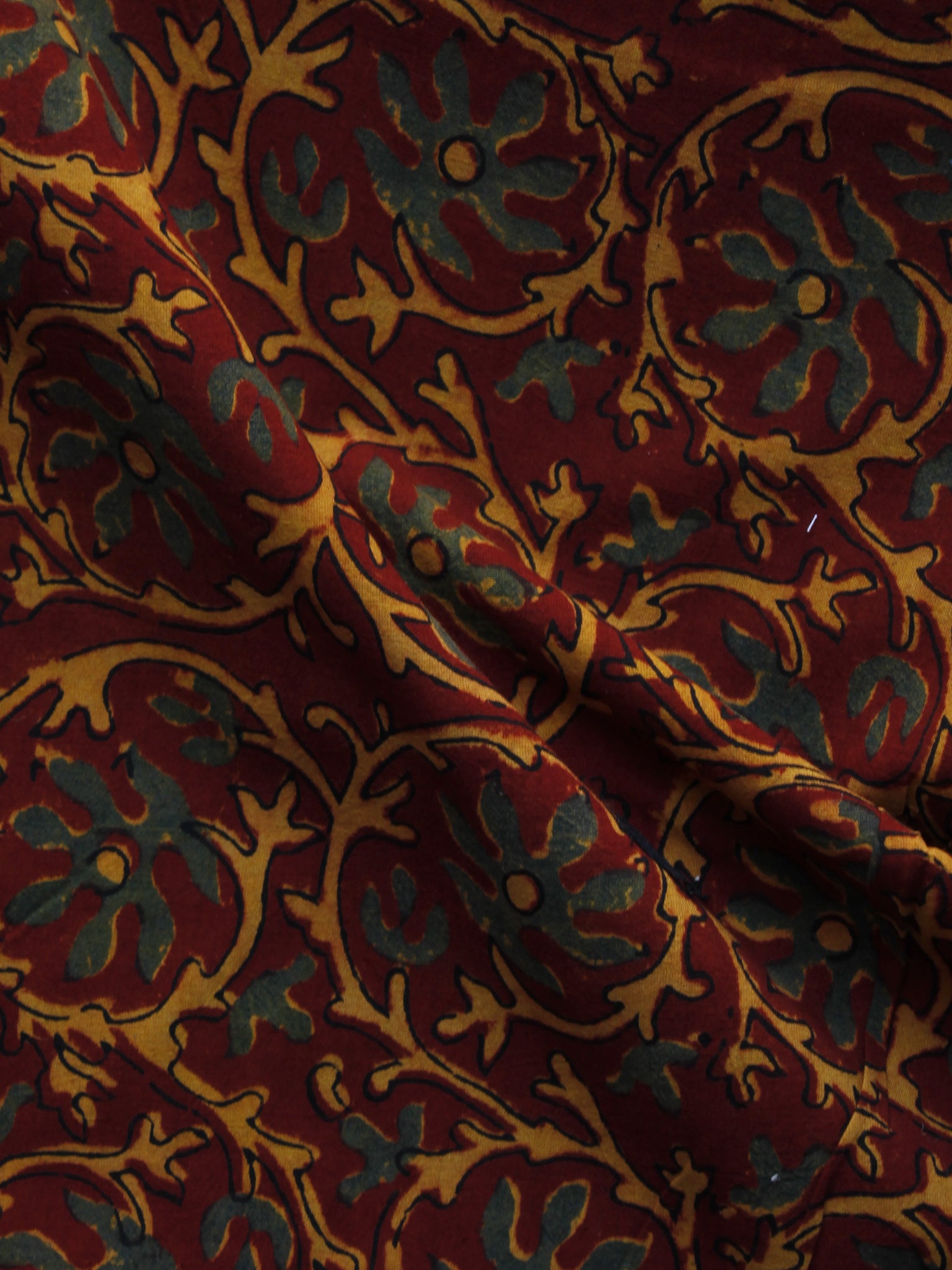 Maroon Rust Orange Green Ajrakh Hand Block Printed Cotton Blouse Fabric - BPA050