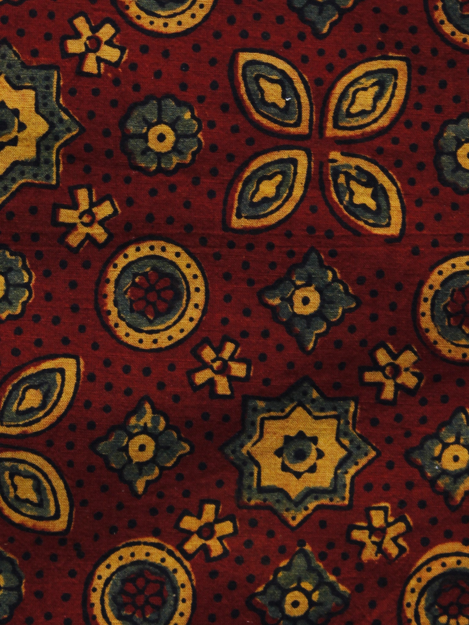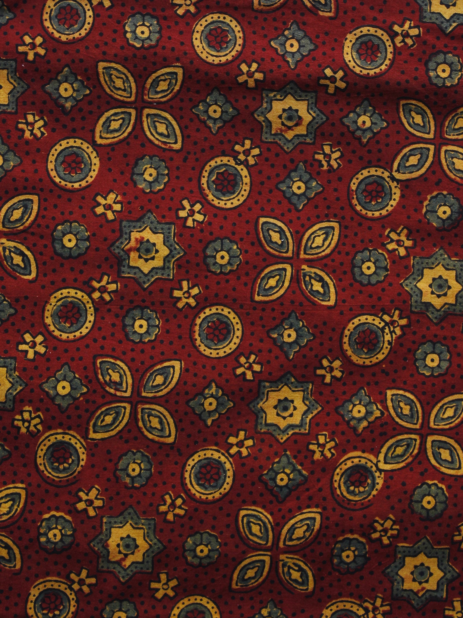 Maroon Yellow Green Ajrakh Hand Block Printed Cotton Blouse Fabric - BPA047
