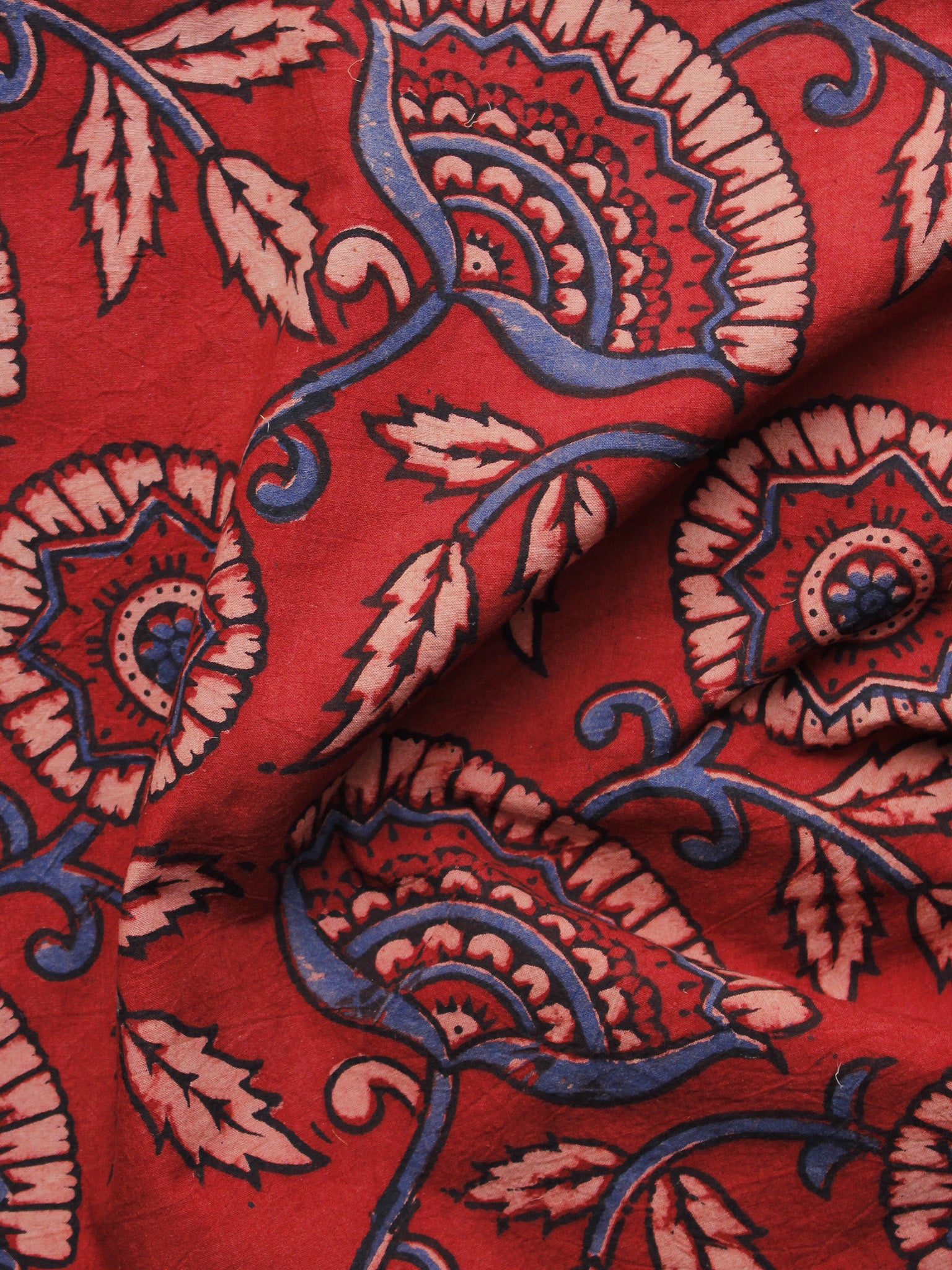 Red Blue Baby Pink Ajrakh Hand Block Printed Cotton Blouse Fabric - BPA069