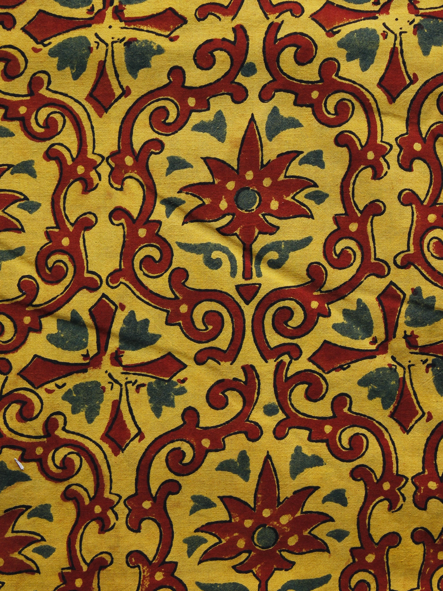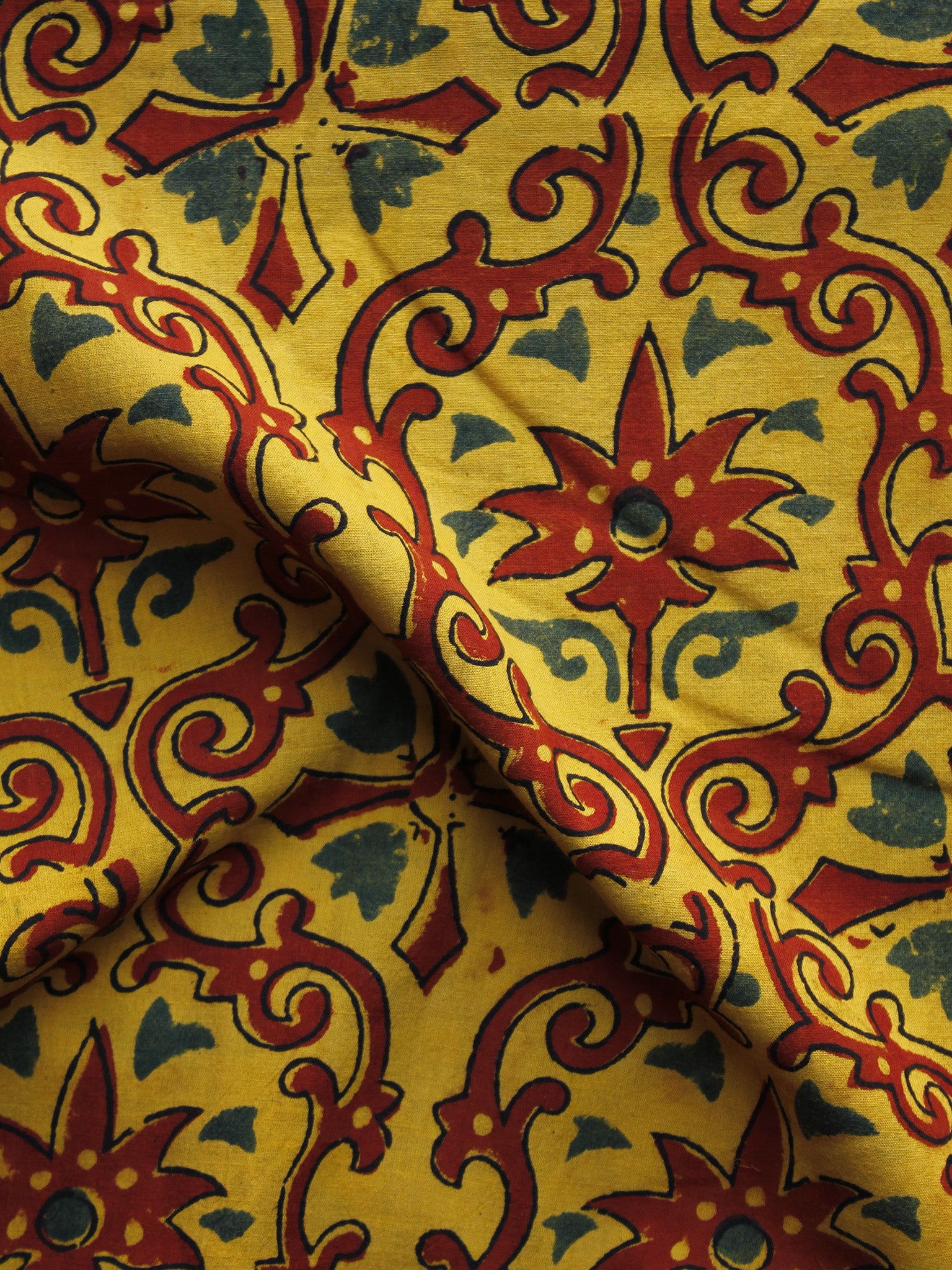 Yellow Maroon Green Ajrakh Hand Block Printed Cotton Blouse Fabric - BPA039