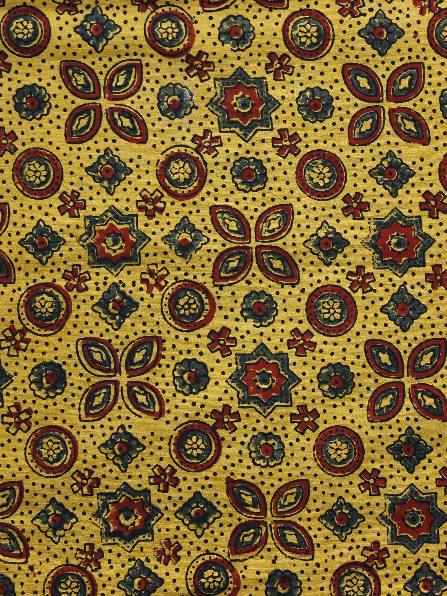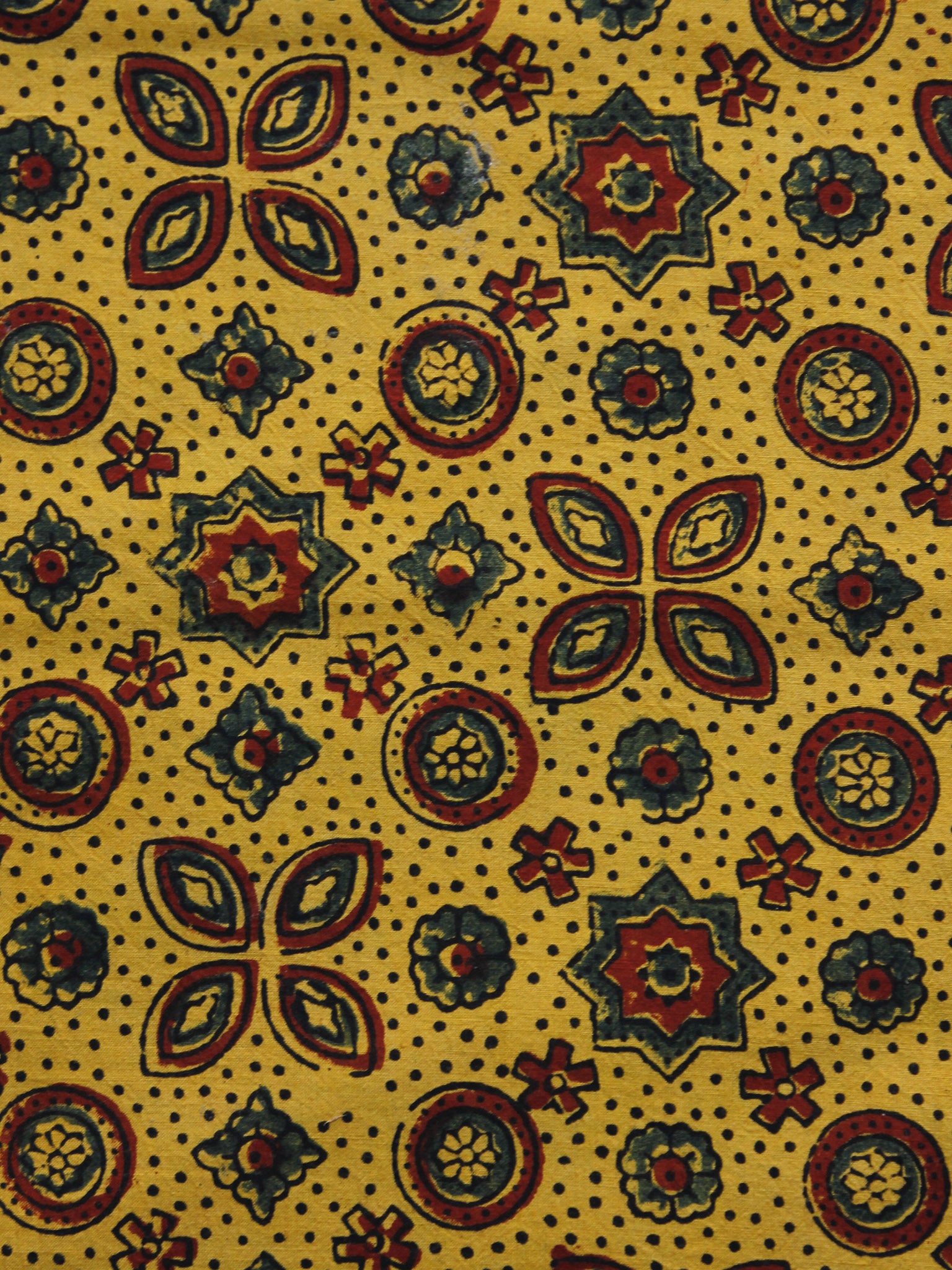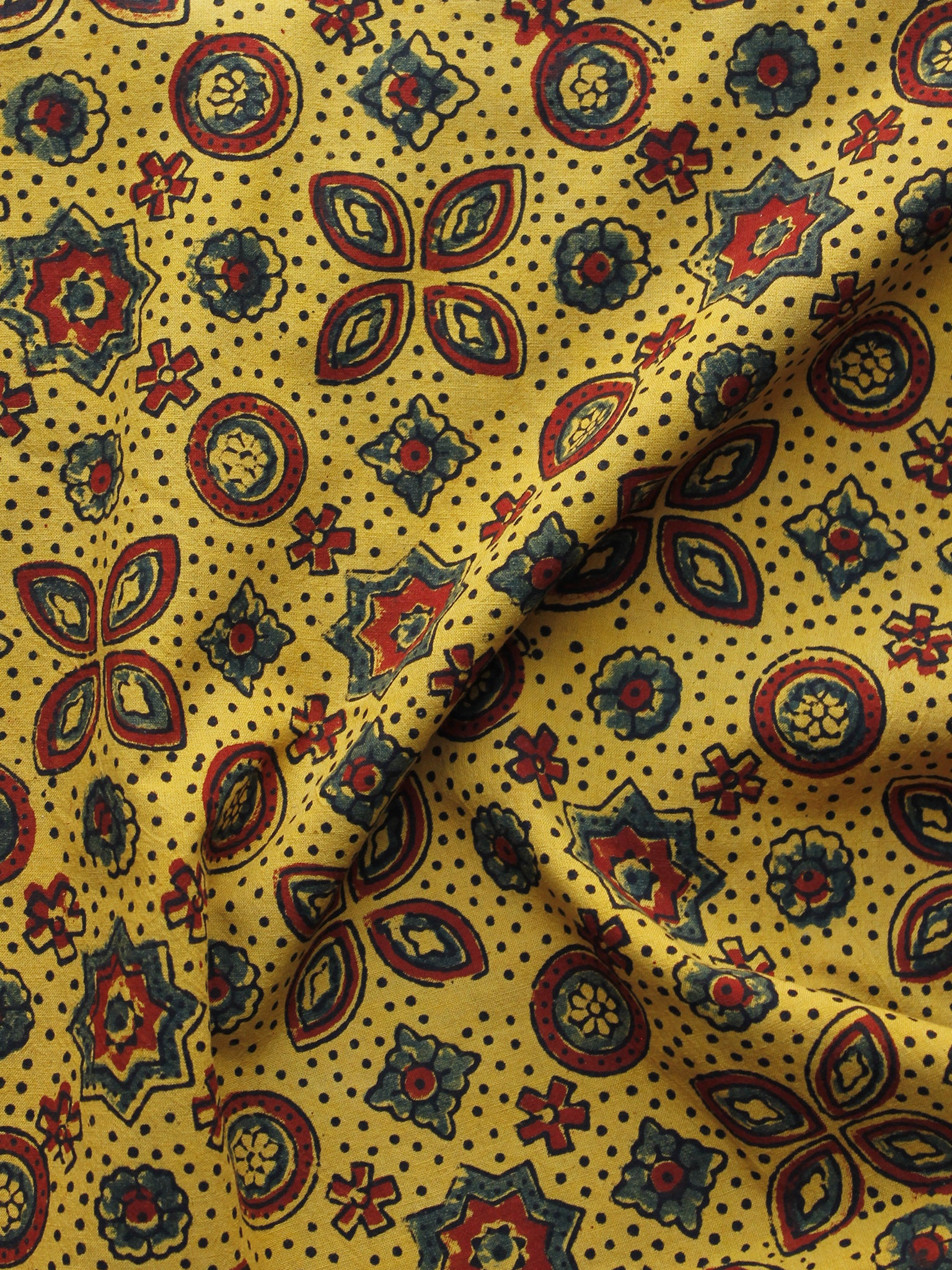 Yellow Maroon Green Ajrakh Hand Block Printed Cotton Blouse Fabric - BPA046