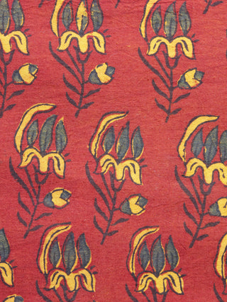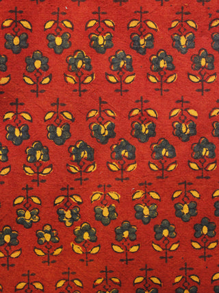 Red Green Yellow Black Ajrakh Hand Block Printed Cotton Blouse Fabric - BPA093