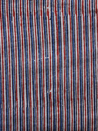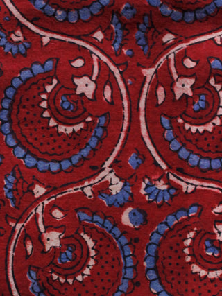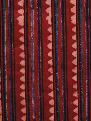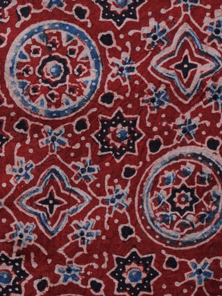 Red Maroon Blue Beige Ajrakh Hand Block Printed Cotton Blouse Fabric - BPA083
