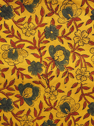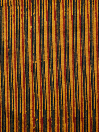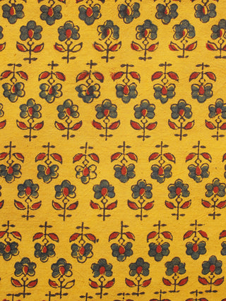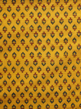 Golden Yellow Olive Green Red Black Ajrakh Hand Block Printed Cotton Blouse Fabric - BPA0118
