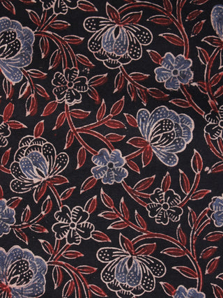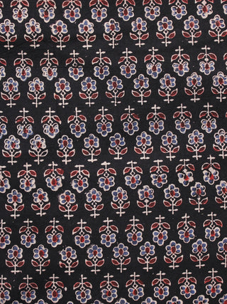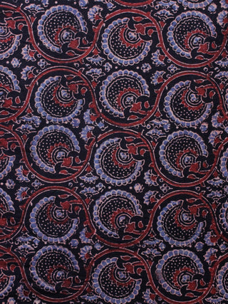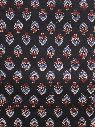 Black Maroon Ivory Blue Ajrakh Hand Block Printed Cotton Blouse Fabric - BPA0107