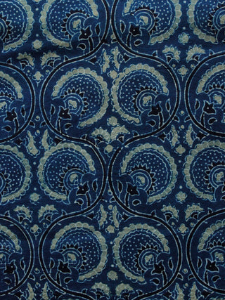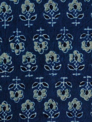 Indigo Black Rust Ivory Ajrakh Hand Block Printed Cotton Blouse Fabric - BPA092