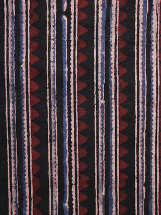 Black Maroon Blue Beige Ajrakh Hand Block Printed Cotton Blouse Fabric - BPA077