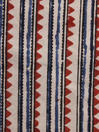 Ivory Red Indigo Black Ajrakh Hand Block Printed Cotton Blouse Fabric - BPA0115