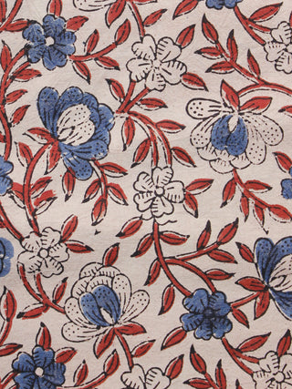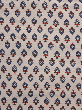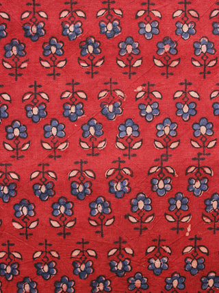 Red Blue Black Beige Ajrakh Hand Block Printed Cotton Blouse Fabric - BPA078