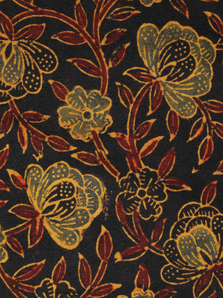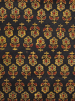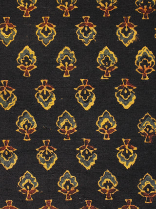 Black Yellow Maroon Ajrakh Hand Block Printed Cotton Blouse Fabric - BPA0100