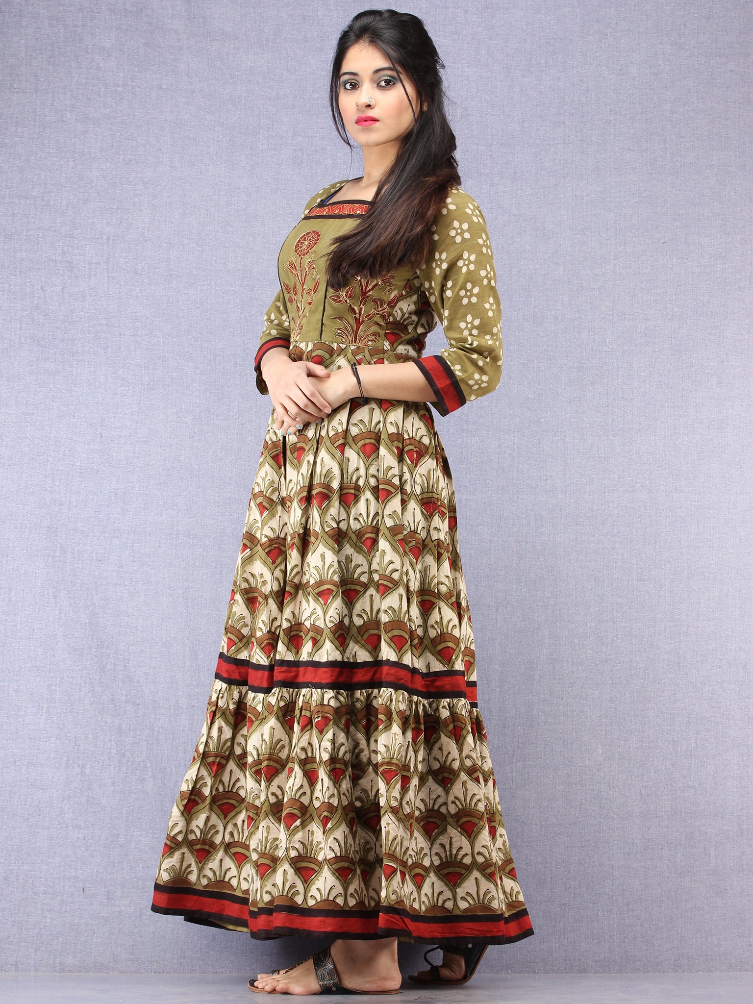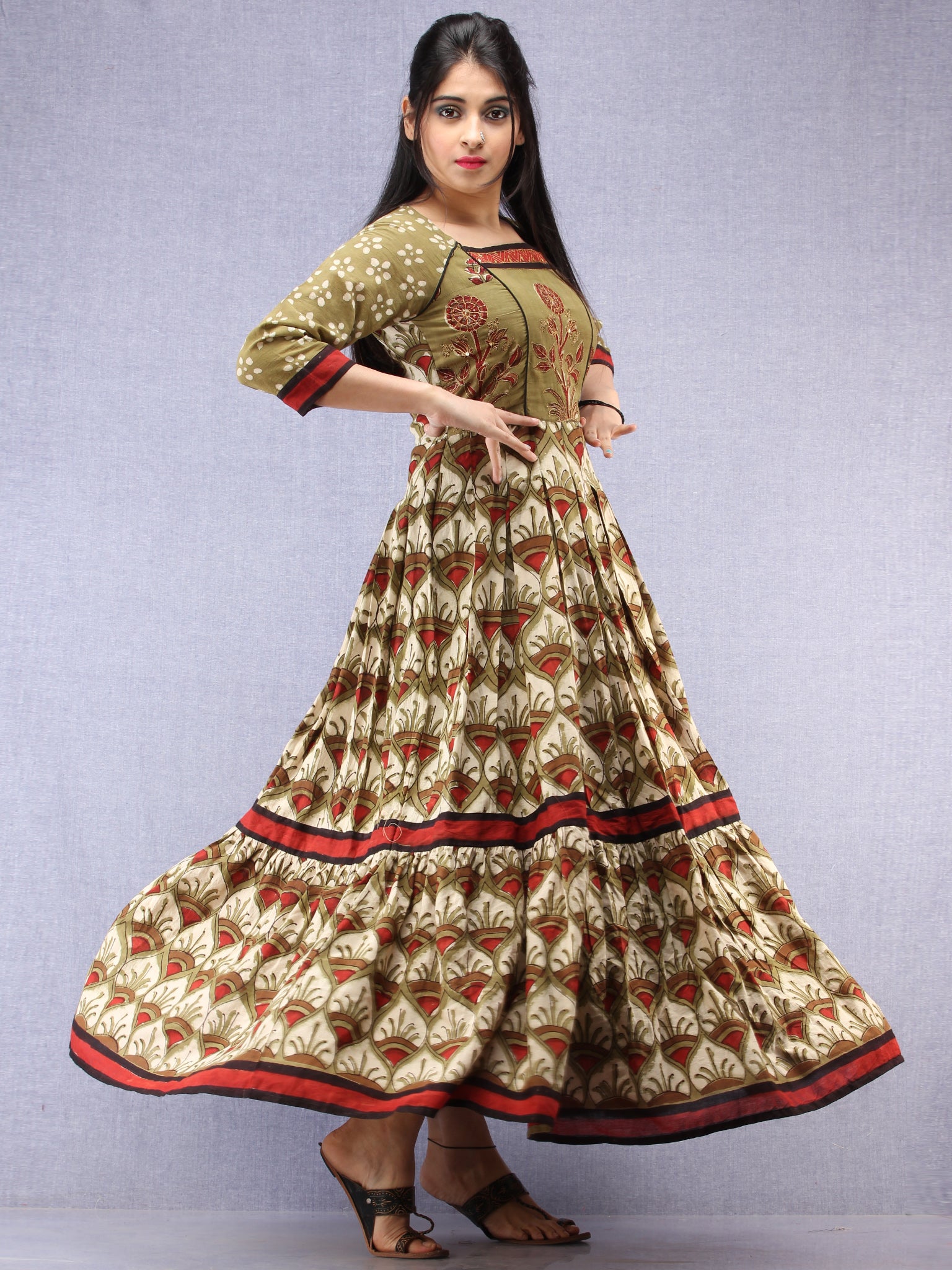 PRODUCT: Fabric is 100% pure cotton. Hand Block printed by Artisans in Rajasthan. It has embroidery on yoke and lining attached.