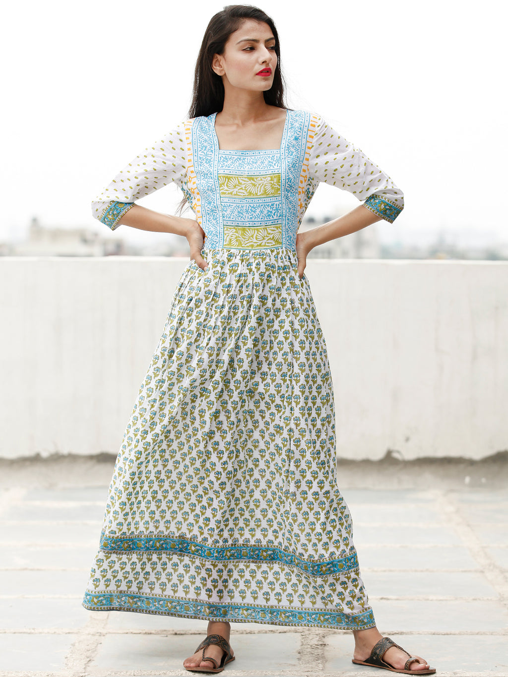 PRODUCT: The fabric of this dress is 100% pure cotton, Hand Block printed in Natural Colors by Artisans in Rajasthan.