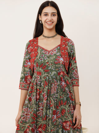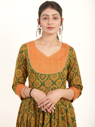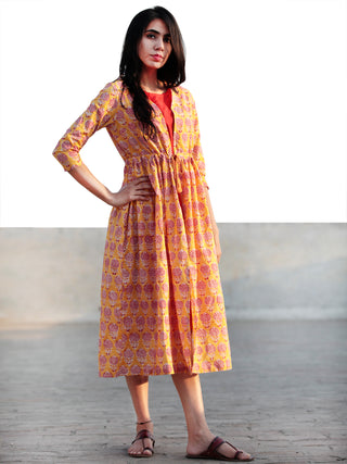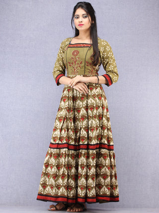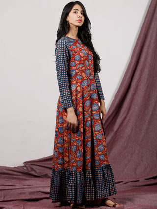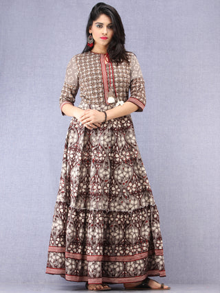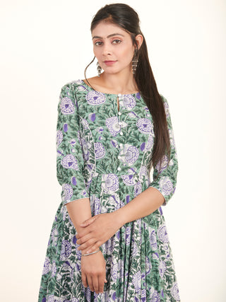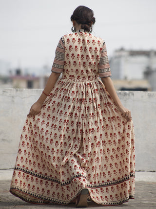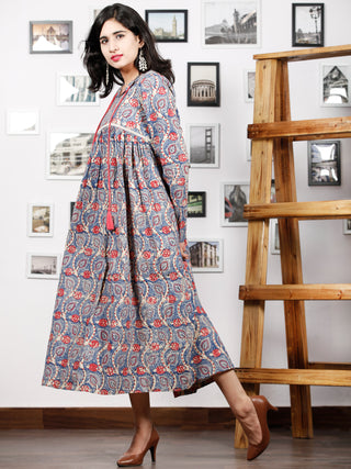 Naaz Sadaf - Hand Block Mughal Printed Long Cotton Dress - DS103F001