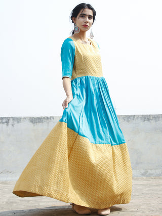 Golden Blue Long Floor Length Dress With Gathers - D121F001