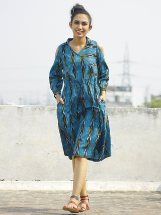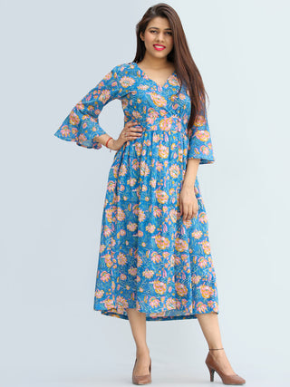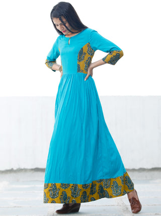 TEAL APPEAL - Hand Block Printed Long Cotton Dress - D347F1816