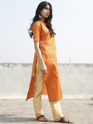 Orange Golden Brocade Kurta With Side Slit - 128F001