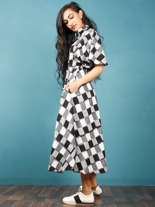 MONOCHROME PLAY - Handwoven Ikat Midi Dress - D324F1452