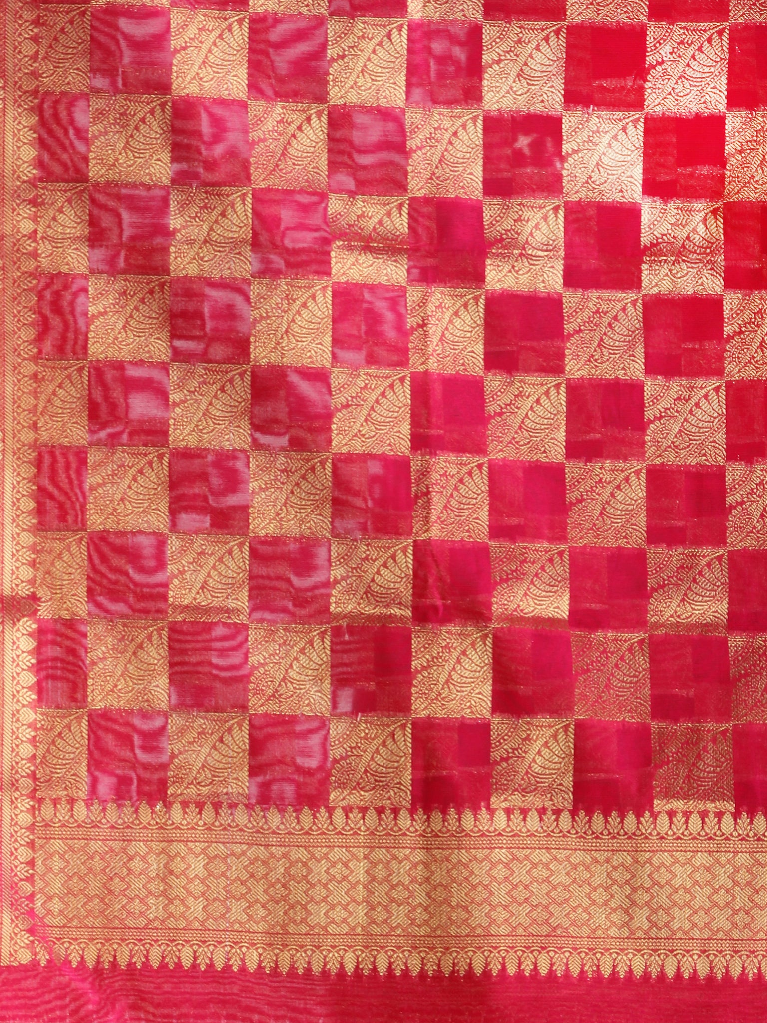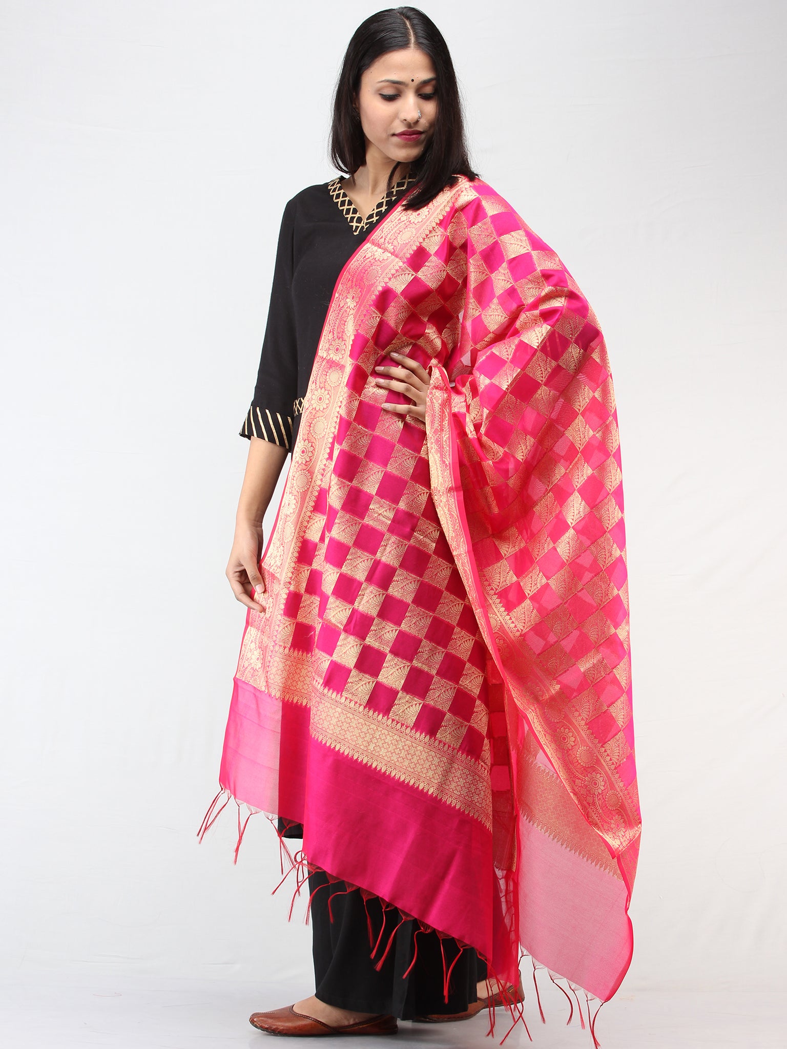 Banarasi Chanderi Jacquard Dupatta With Zari Work - Hot Pink & Gold - D04170914