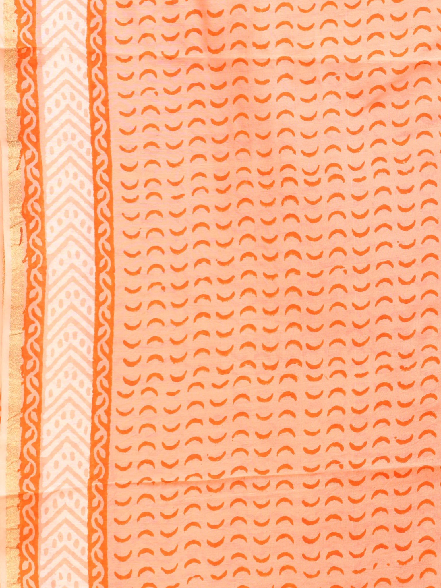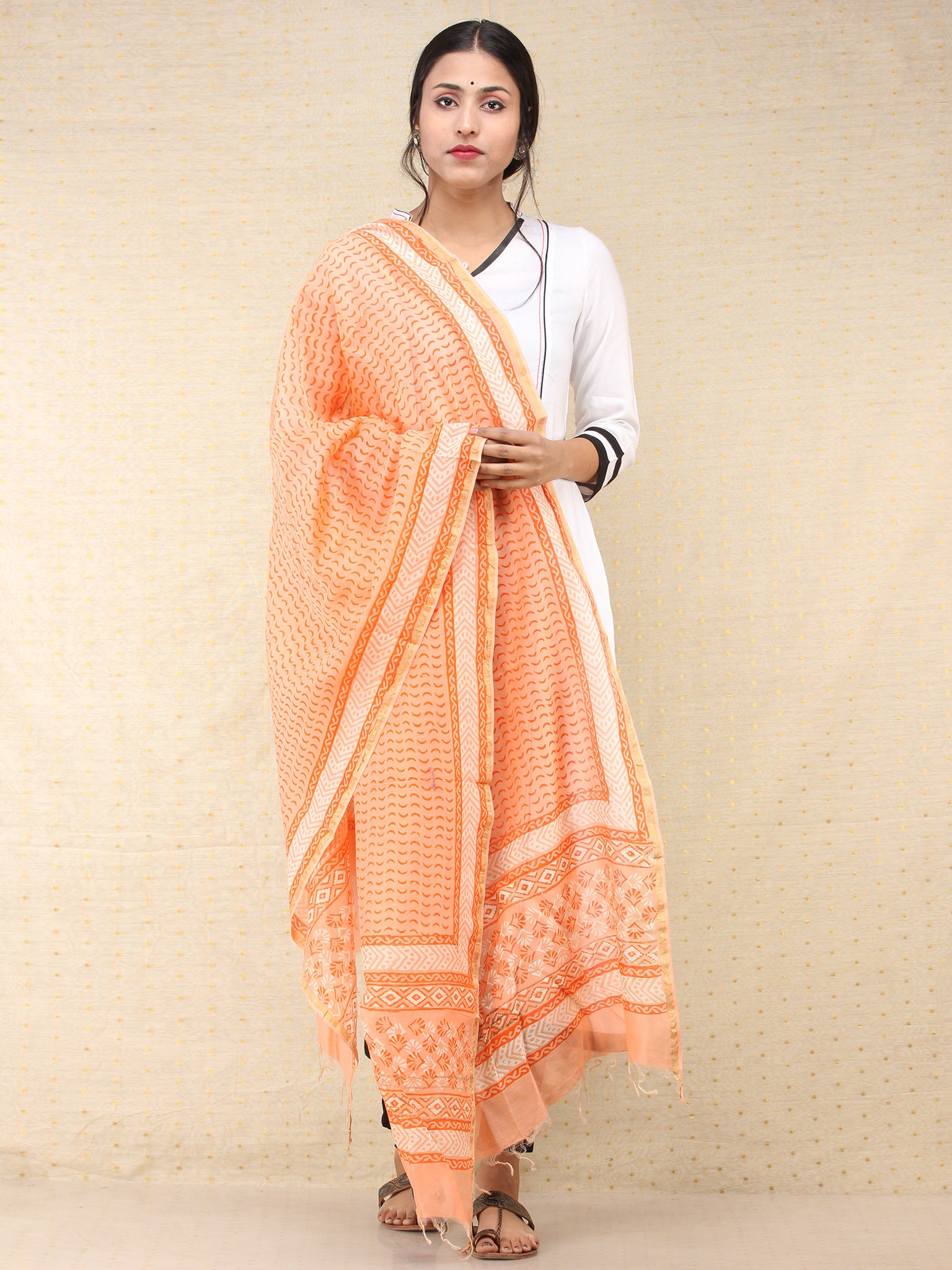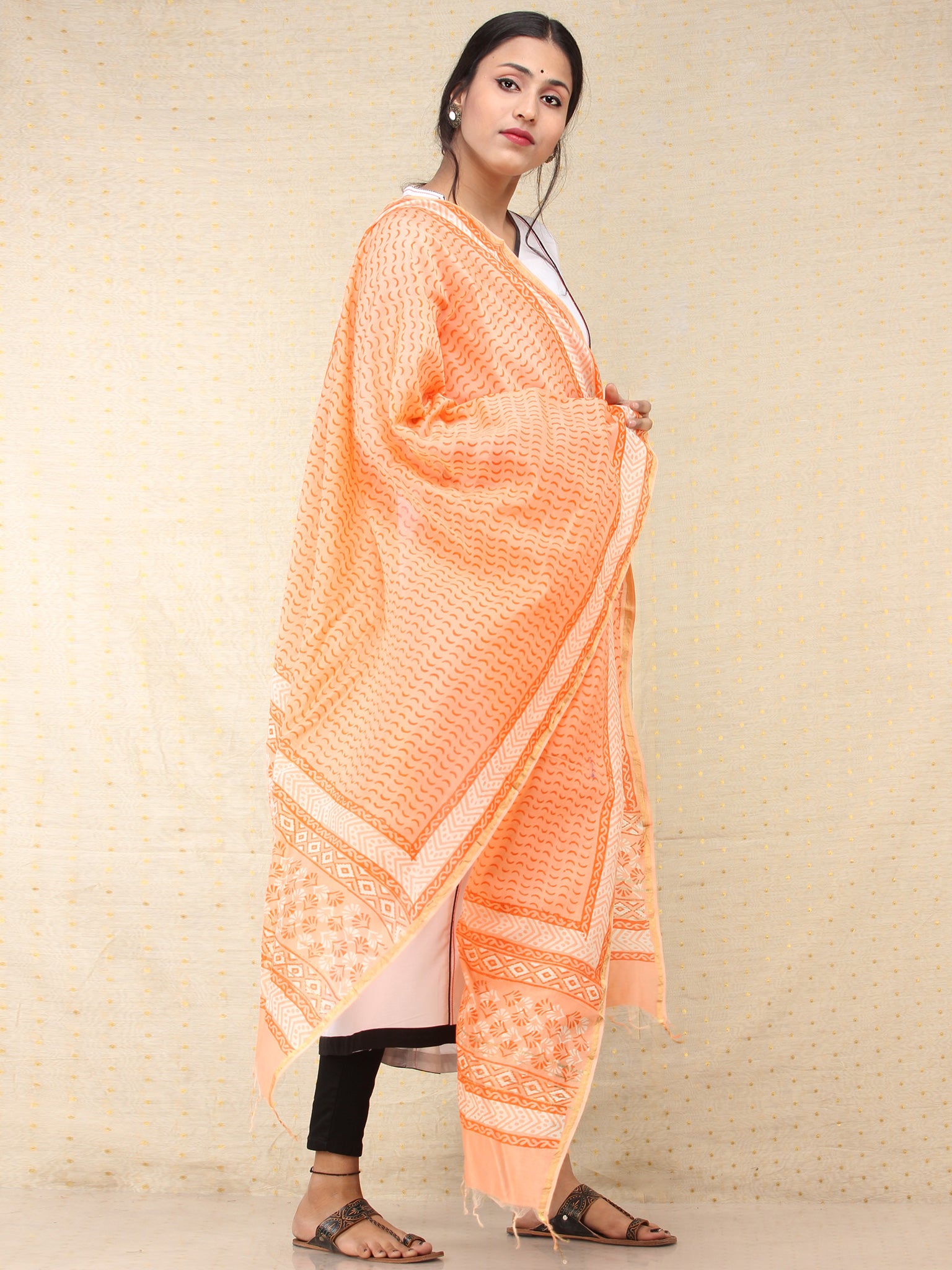 Peach Red Chanderi Hand Block Printed Dupatta - D04170754
