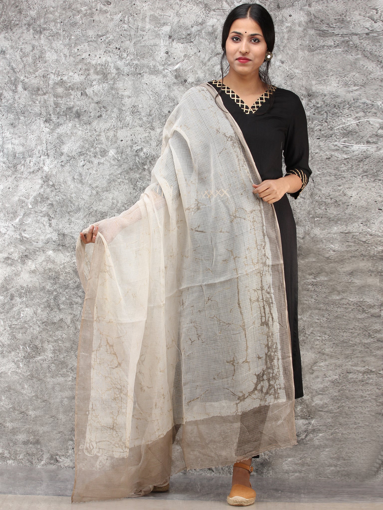 White Kashish Kota Silk Hand Block Printed Dupatta - D04170786