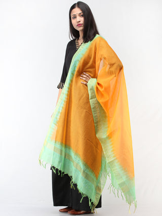 Kota Doria Tie & Die Dupatta With Zari Border - Yellow & Light Green - D04170897