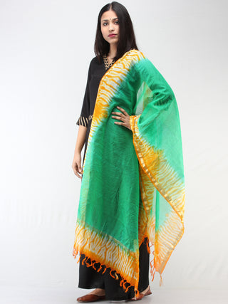 Kota Doria Tie & Die Dupatta With Zari Border - Parrot Green & Orange - D04170895