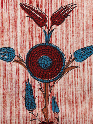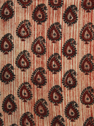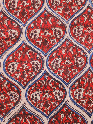 Red Ivory Maroon Indigo Hand Block Printed Cotton Fabric Per Meter - F001F1807