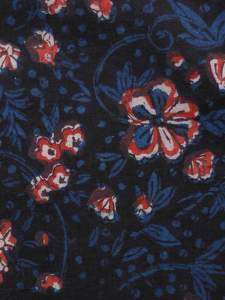 Black Indigo Ivory Red Hand Block Printed Cotton Fabric Per Meter - F001F1819