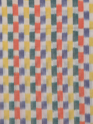 White Multi Color Pochampally Hand Weaved Ikat Mercerised Cotton Fabric Per Meter - F002F1749