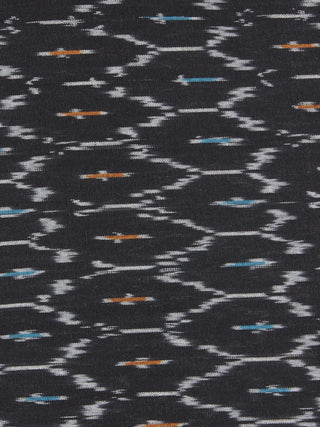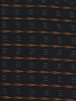 Black Teal Blue Orange Pochampally Hand Weaved Ikat Fabric Per Meter - F0916754